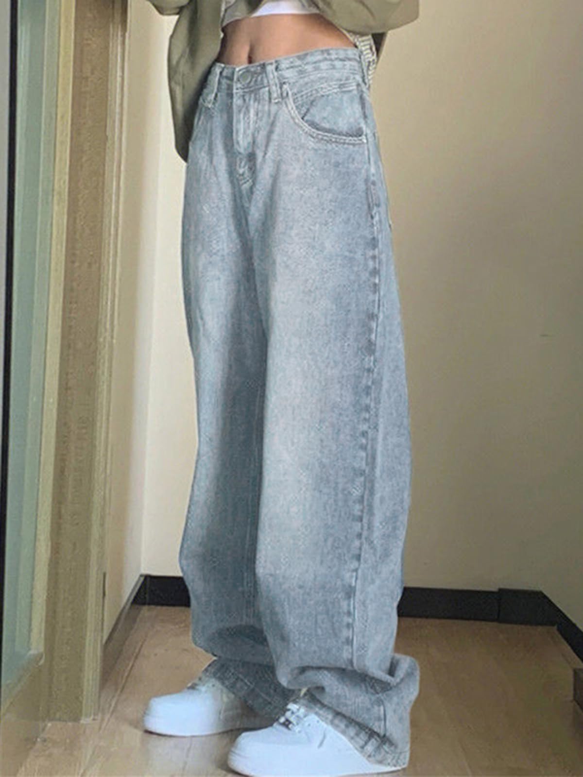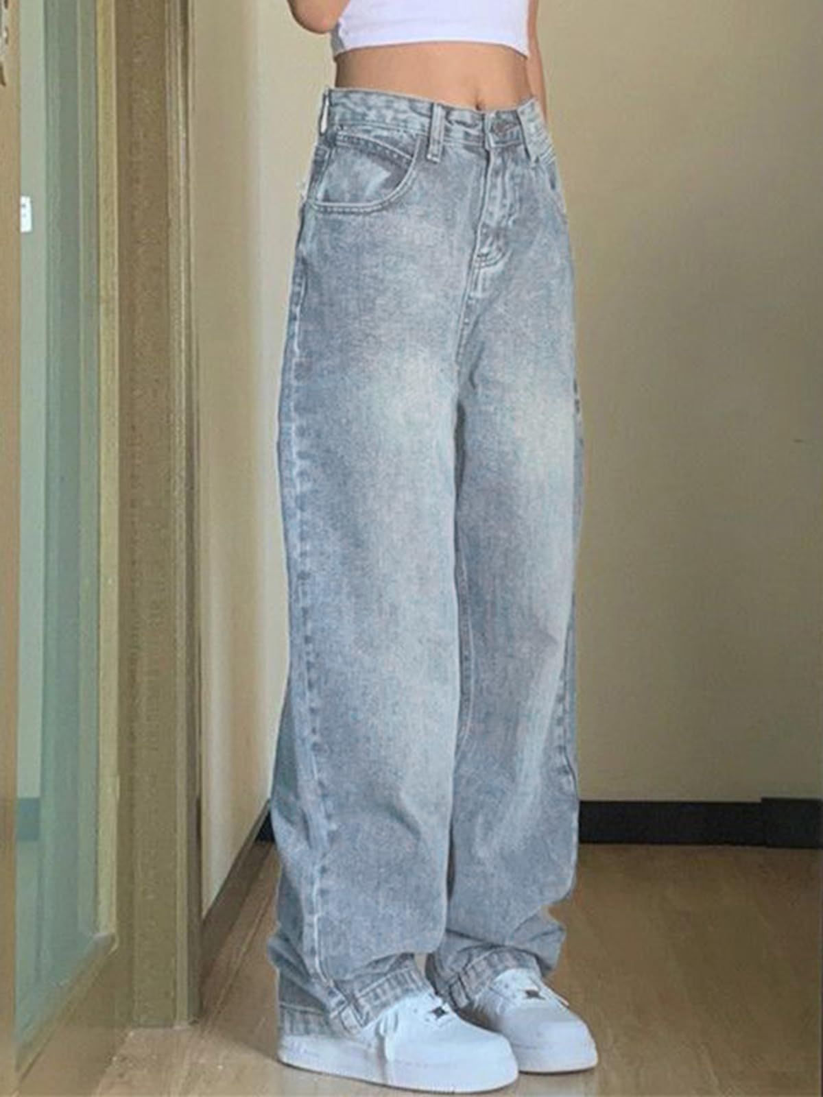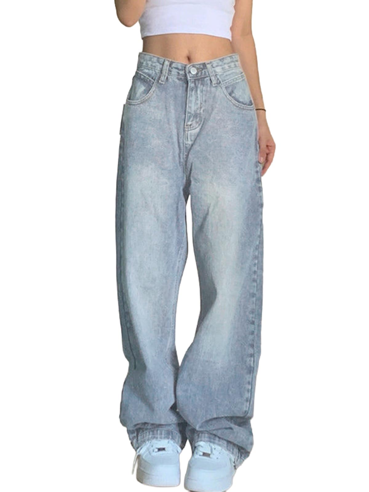 Vintage boyfriend jeans come with 4 traditional pockets. Intentionally distressed design in the pockets' edges, providing these women's jeans with both style and function. Y2k baggy jeans with zip fly, button closure and belt loops for your ease of use.
