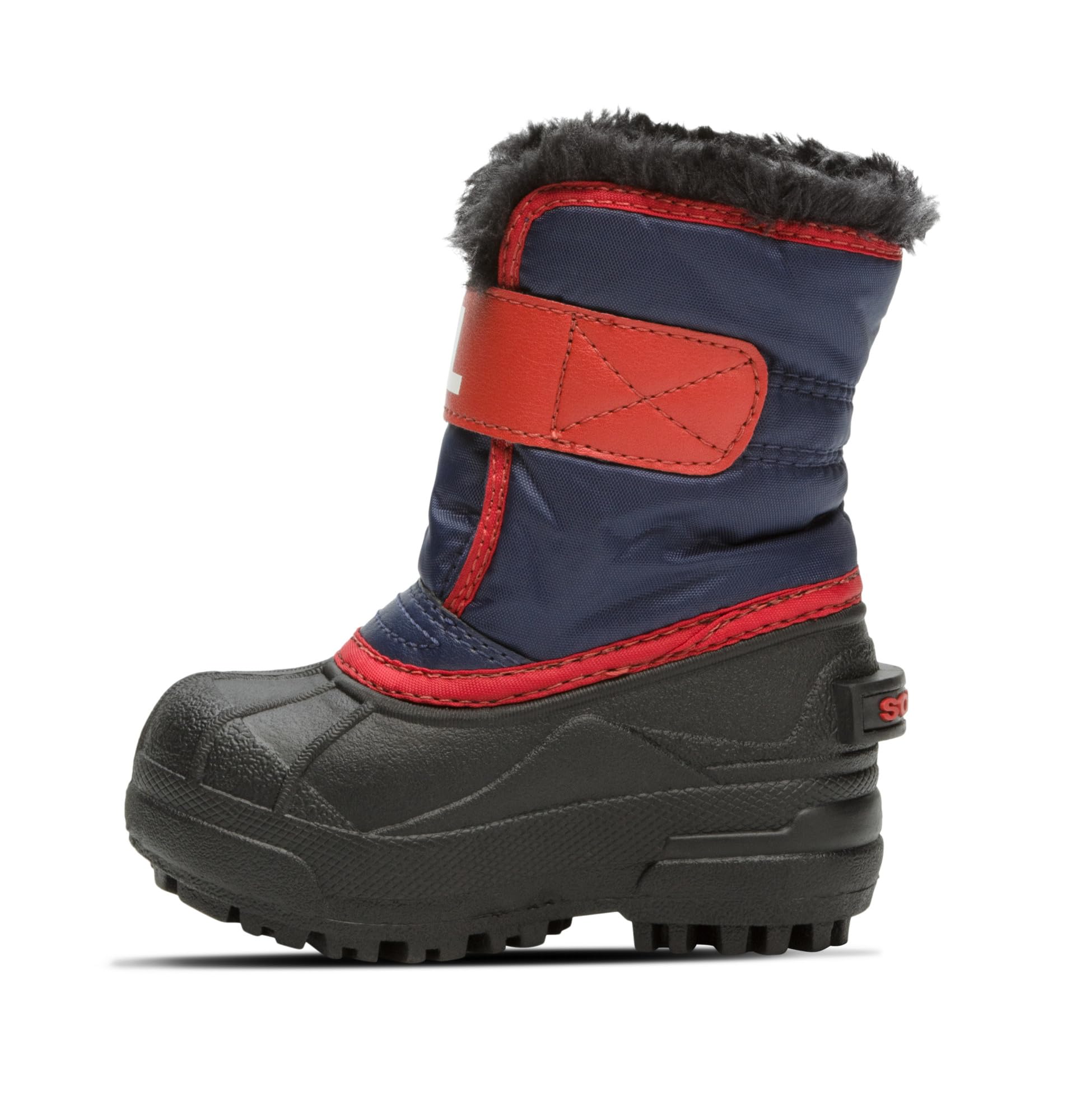 Description COMMAND THE SNOW They'll show the snow who’s boss with this ultra-warm boot. It features 200g of cozy insulation, plus a soft fleece lining, and easy-to-use velcro straps. The burly sole provides enhanced traction on slick terrain, whether they’re toddling up the sled hill or making snow angels.