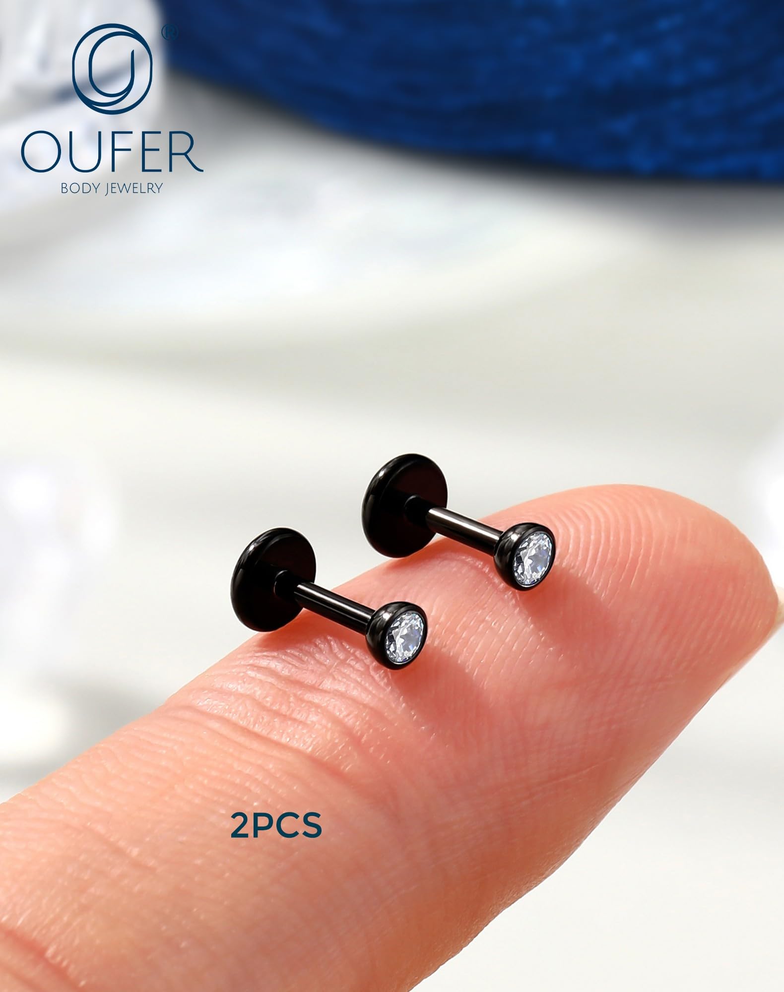 【2MM CZ Accent · Soft Shine for Minimal Looks】:Set with a 2mm CZ, this stud offers delicate brilliance—perfect for nostril, tragus, or upper cartilage piercings.