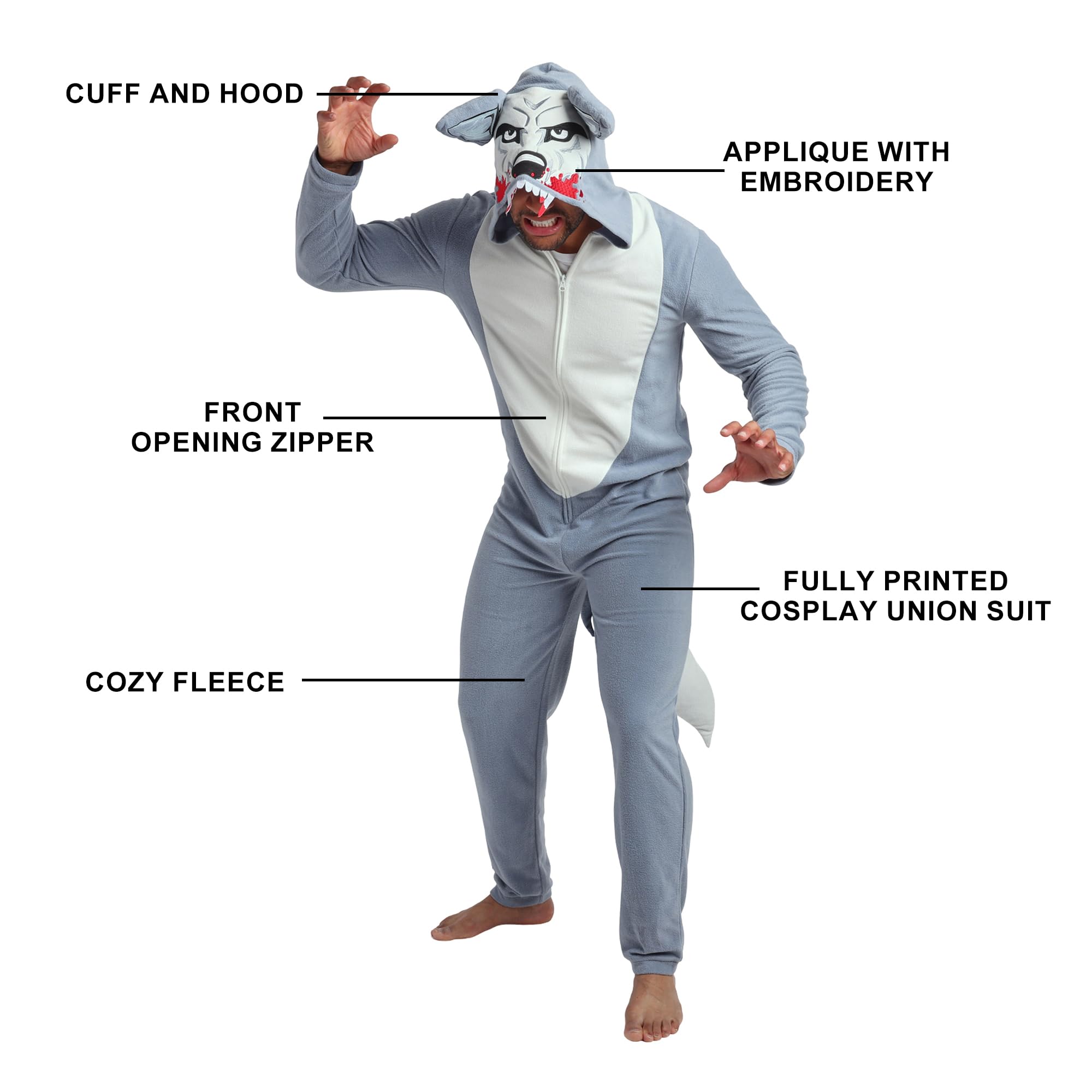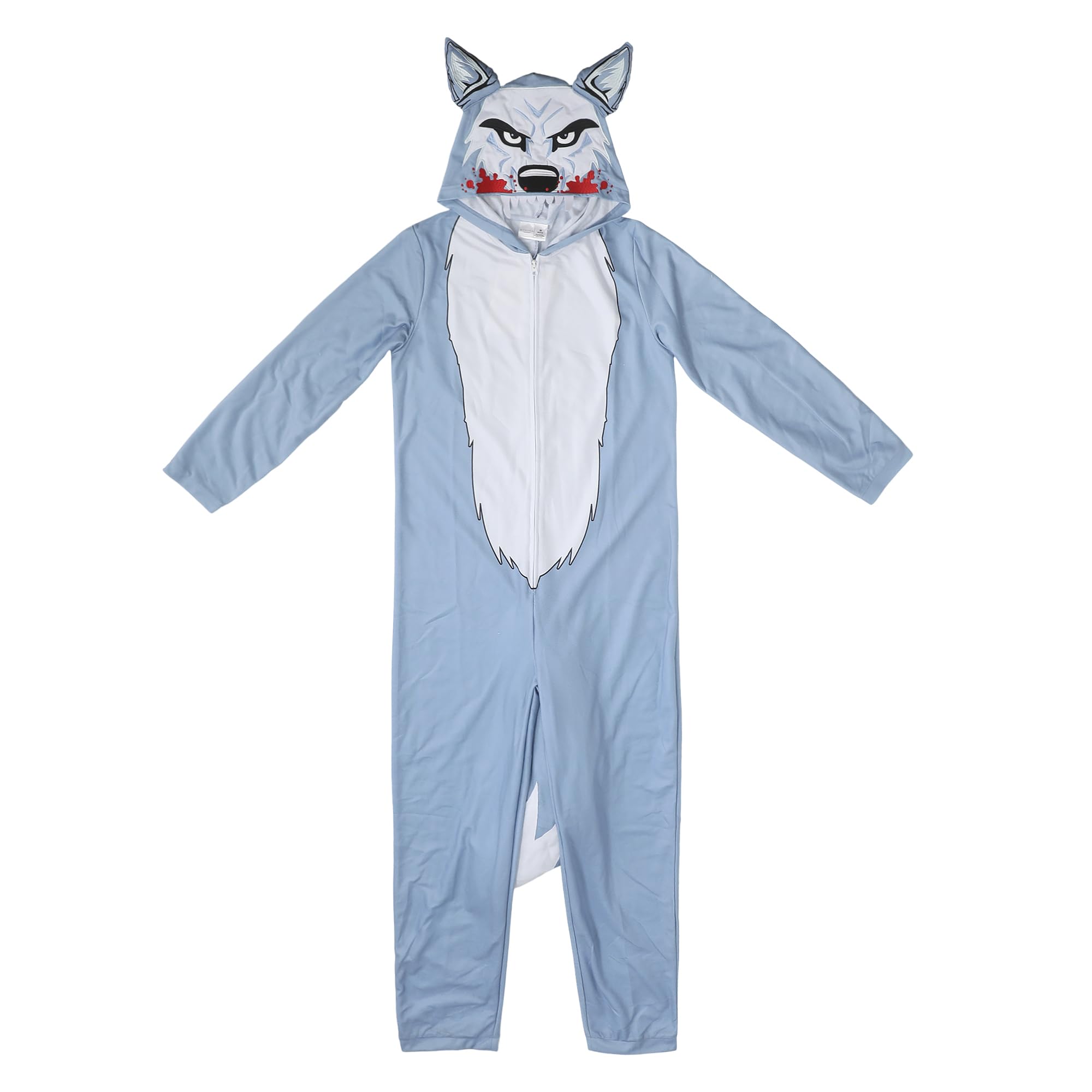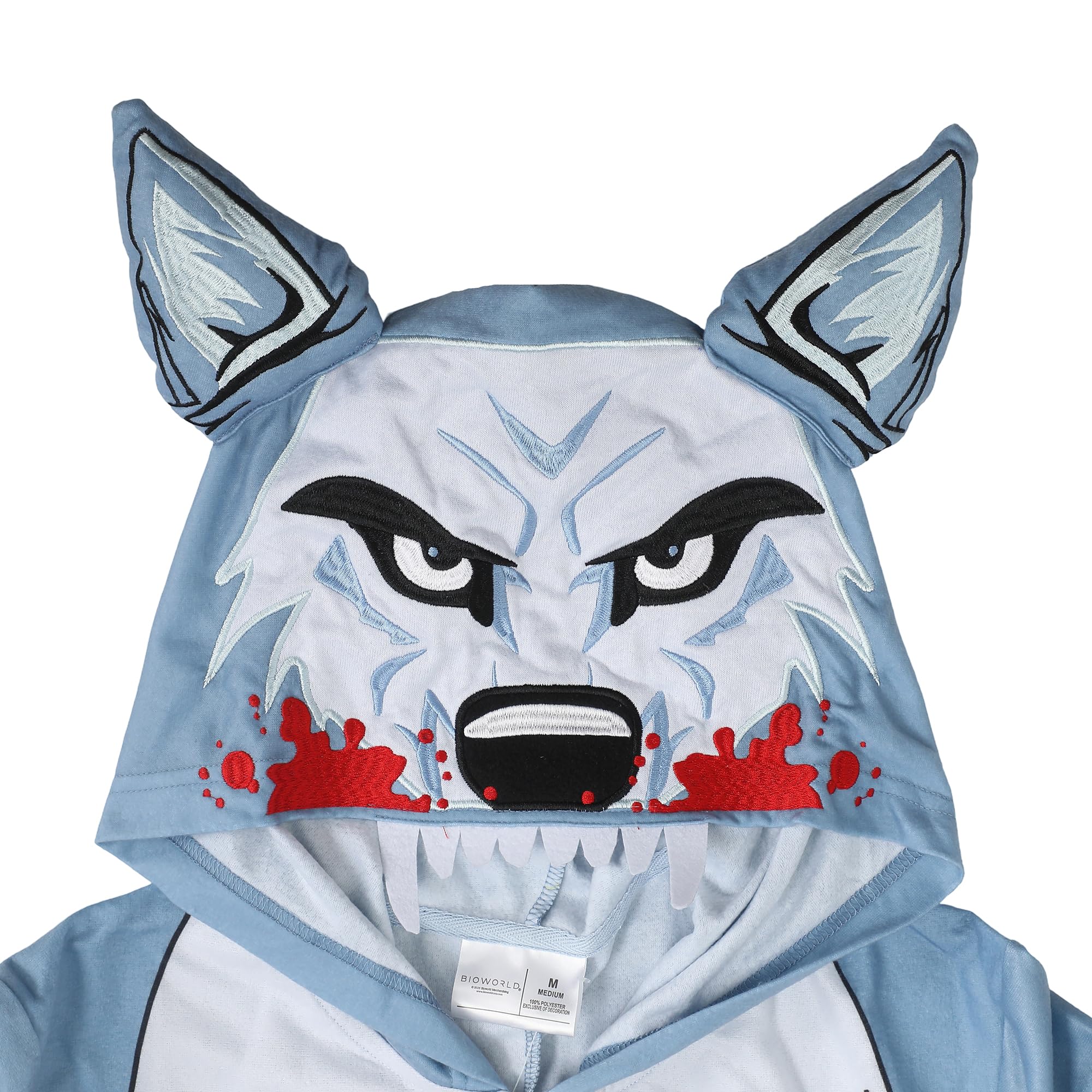 Custom Design: Displays a wolf theme with a 3D tail and an embroidered blood-splattered face with 3D ears for a bold cosplay style