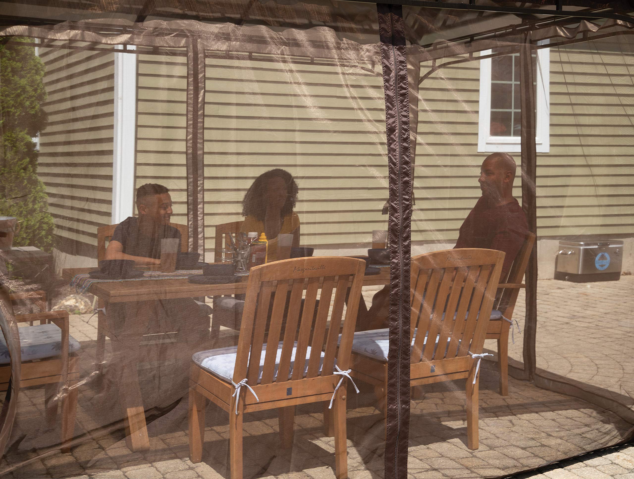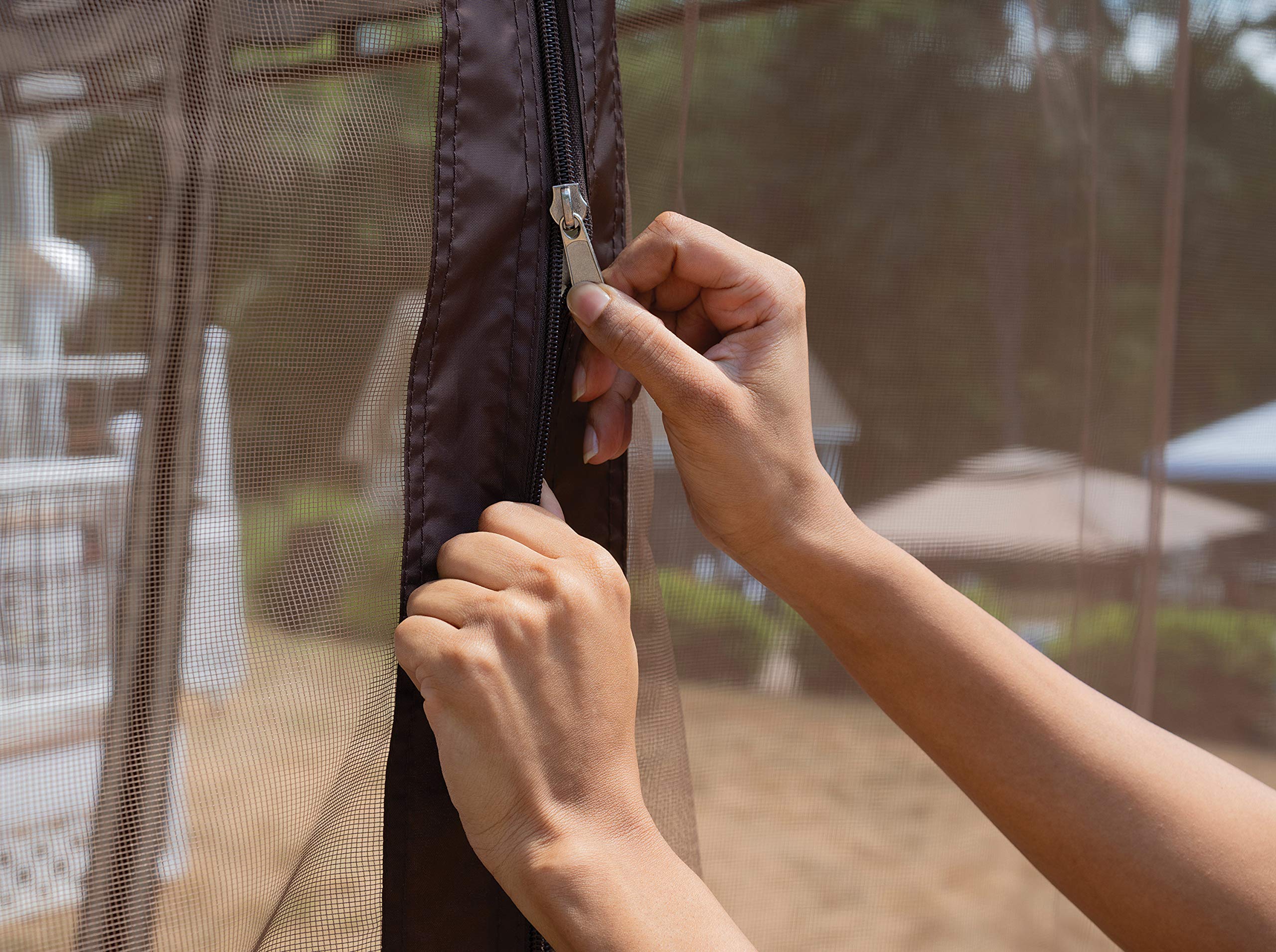 PROTECTION FROM BUGS: CPAI-84 fire-rated mosquito netting zips together to convert your gazebo into a screenhouse instantly, or use included ties to convert them to attractive valances