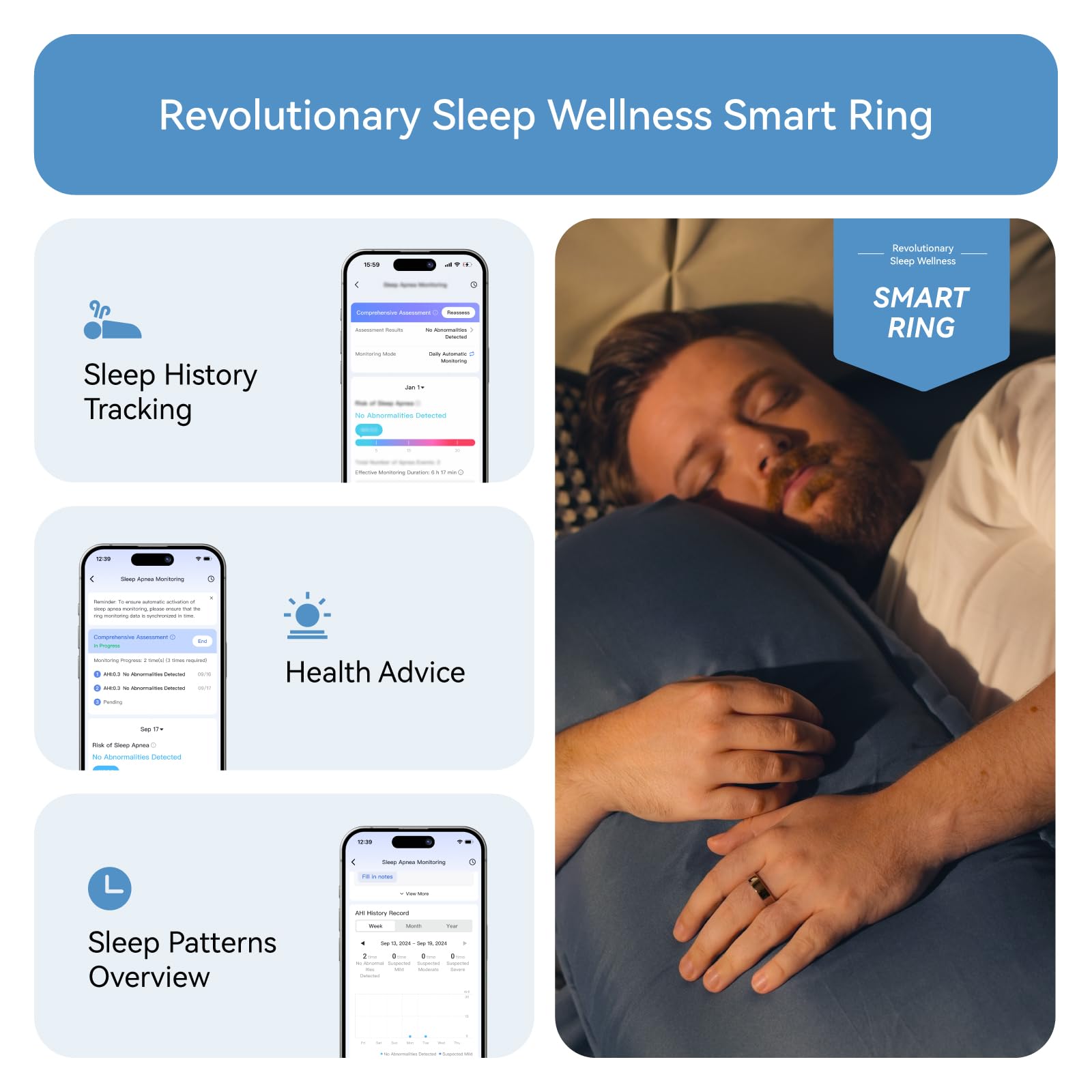 [Sleep Apnea Monitoring] RingConn Gen 2 Smart Ring supports sleep health with advanced technology. Developed with leading universities and hospitals, this AI-powered ring accurately tracks sleep apnea. Unlike traditional devices, it's lightweight and comfortable, offering multi-day monitoring with real-time AHI data and personalized insights via a dedicated app for easy sleep health management