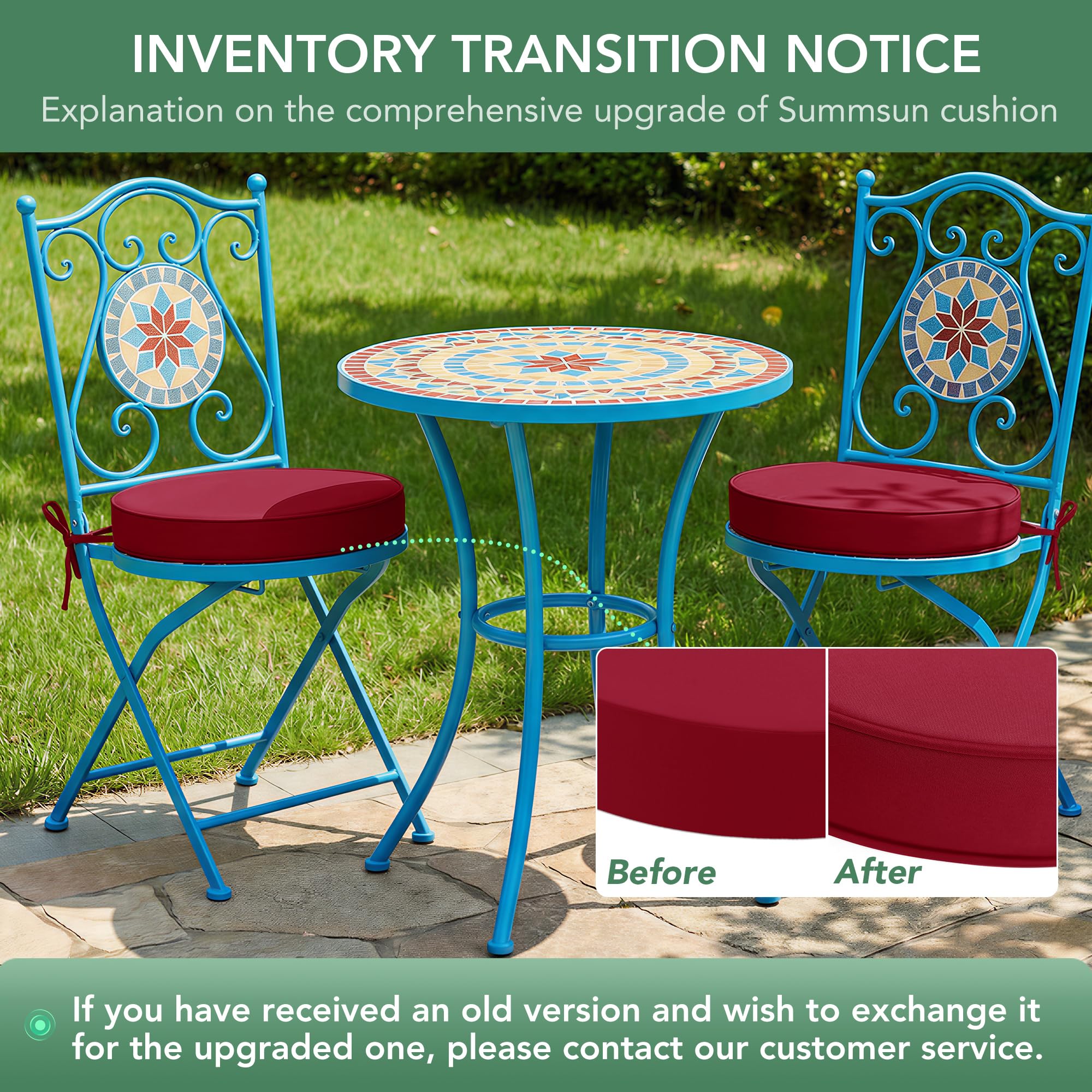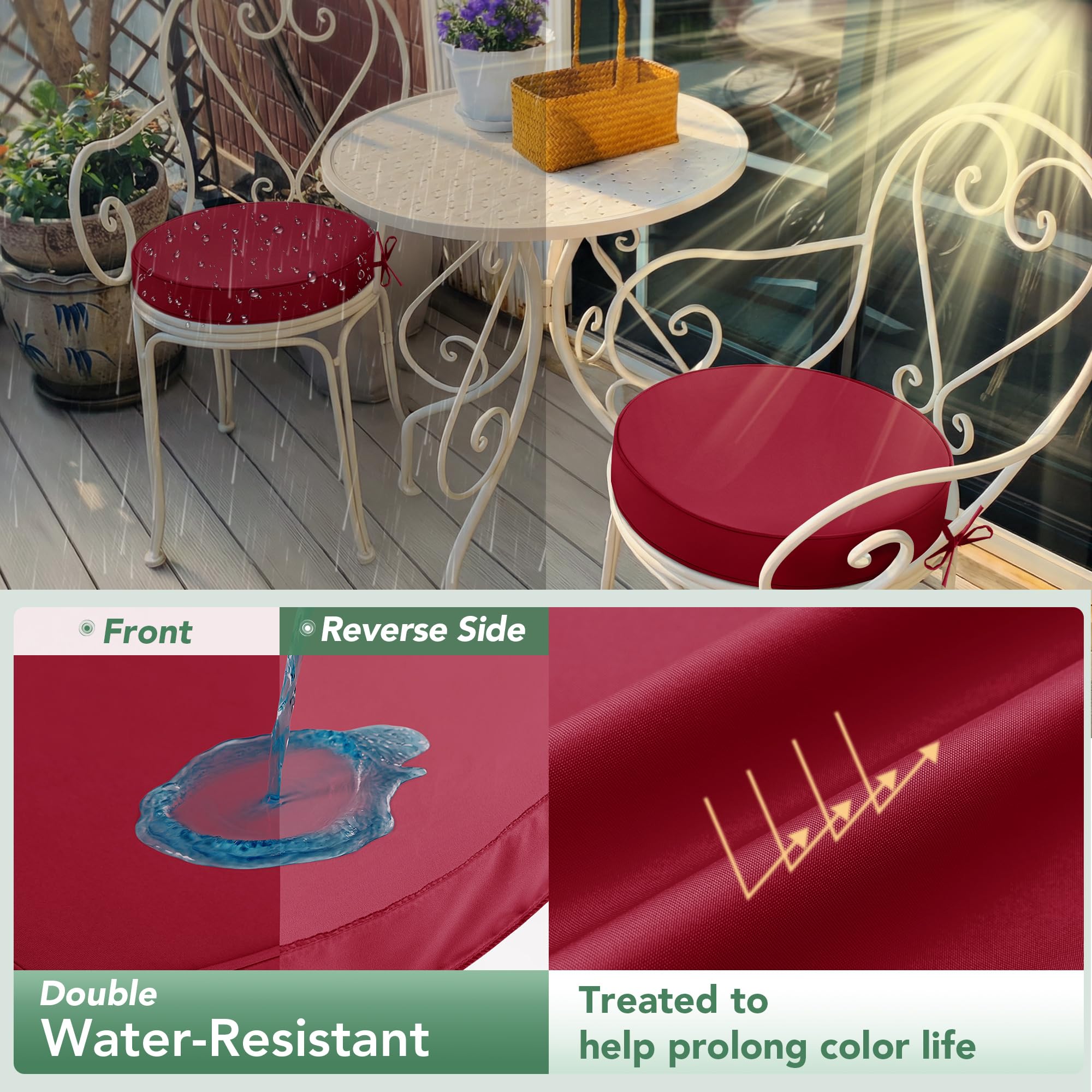 Waterproof & Fade-Resistant: Crafted from high-quality 250gsm polyester fabric, these premium bistro chair cushions are built to withstand the elements. The weather-resistant fabric repels moisture, keeping your outdoor seat cushions dry and protected from rain, while anti-fading technology preserves their vibrant colors even after prolonged sun exposure.