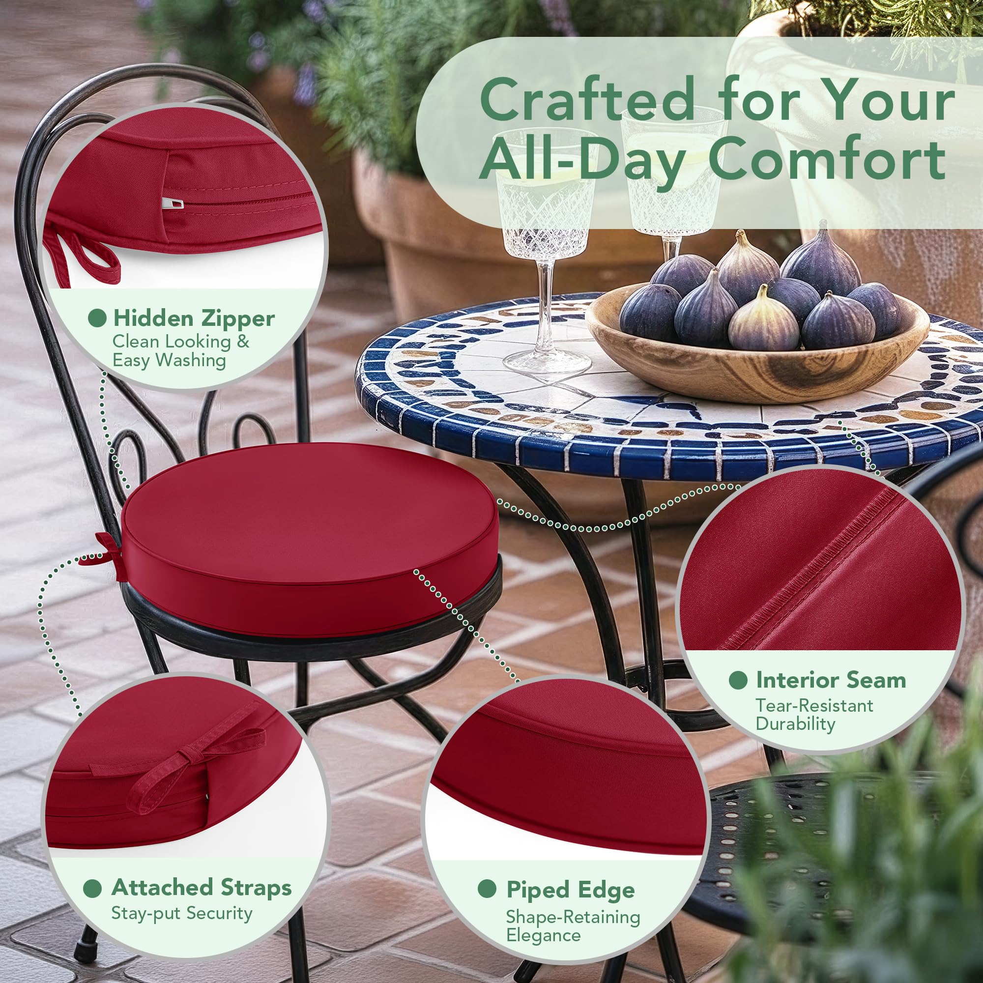 Secure & Easy to Maintain: Each circle outdoor cushions features two durable ties to keep it securely fastened to your furniture, preventing slipping and shifting. The removable cover is machine washable for effortless cleaning—simply unzip, remove, and toss it in the wash to maintain a fresh look.
