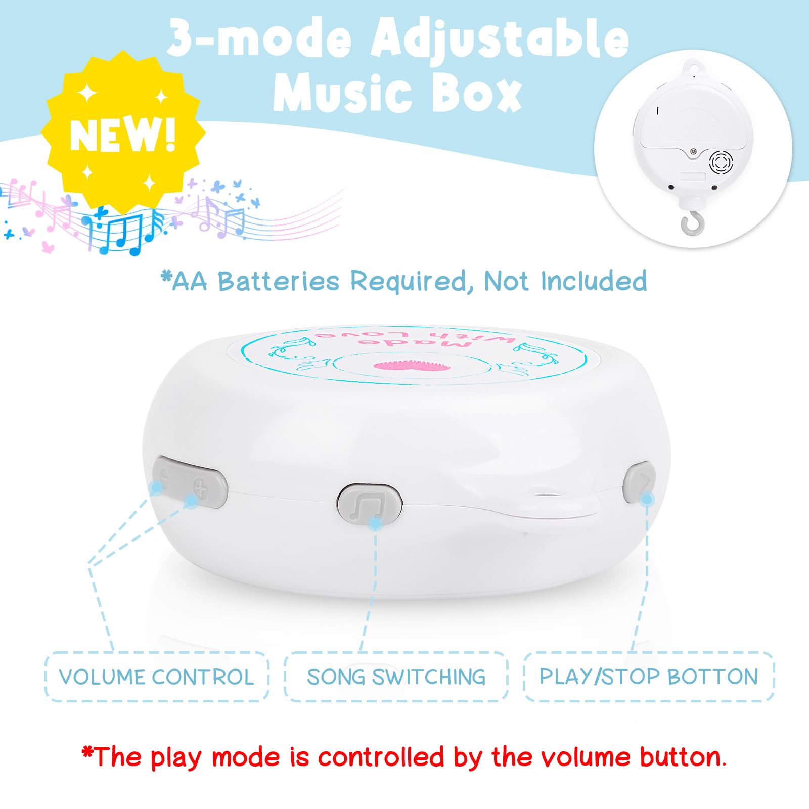12 Soothing Lullabies: The upgraded 3-mode music box lets you choose rotation, music, or both. Soft melodies and gentle spinning create a calming bedtime routine for baby and parents alike