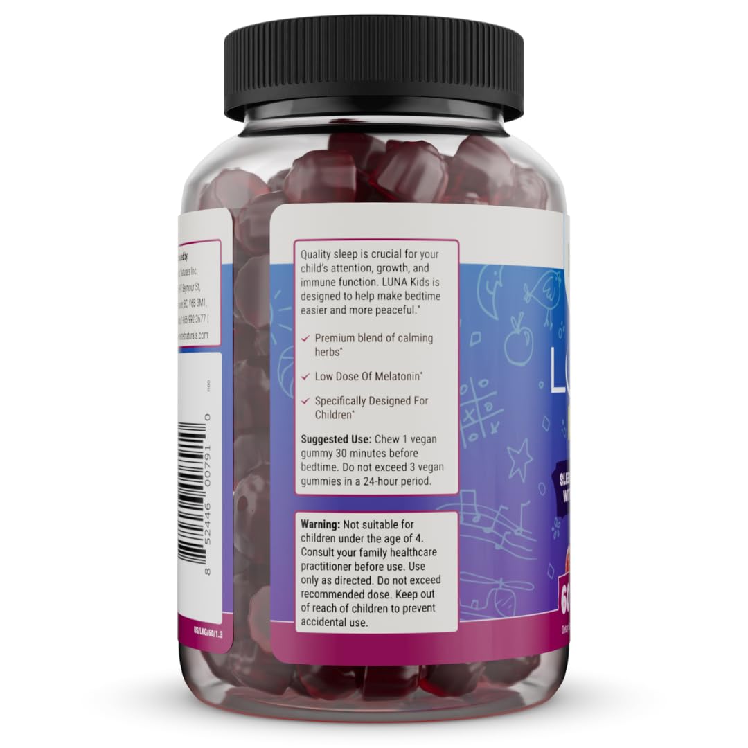Natural Sleep Ingredients: Luna Kids Gummies are crafted with a combination of carefully selected nature-inspired ingredients known for their sleep-enhancing properties, providing a gentle and effective sleep aid for children.