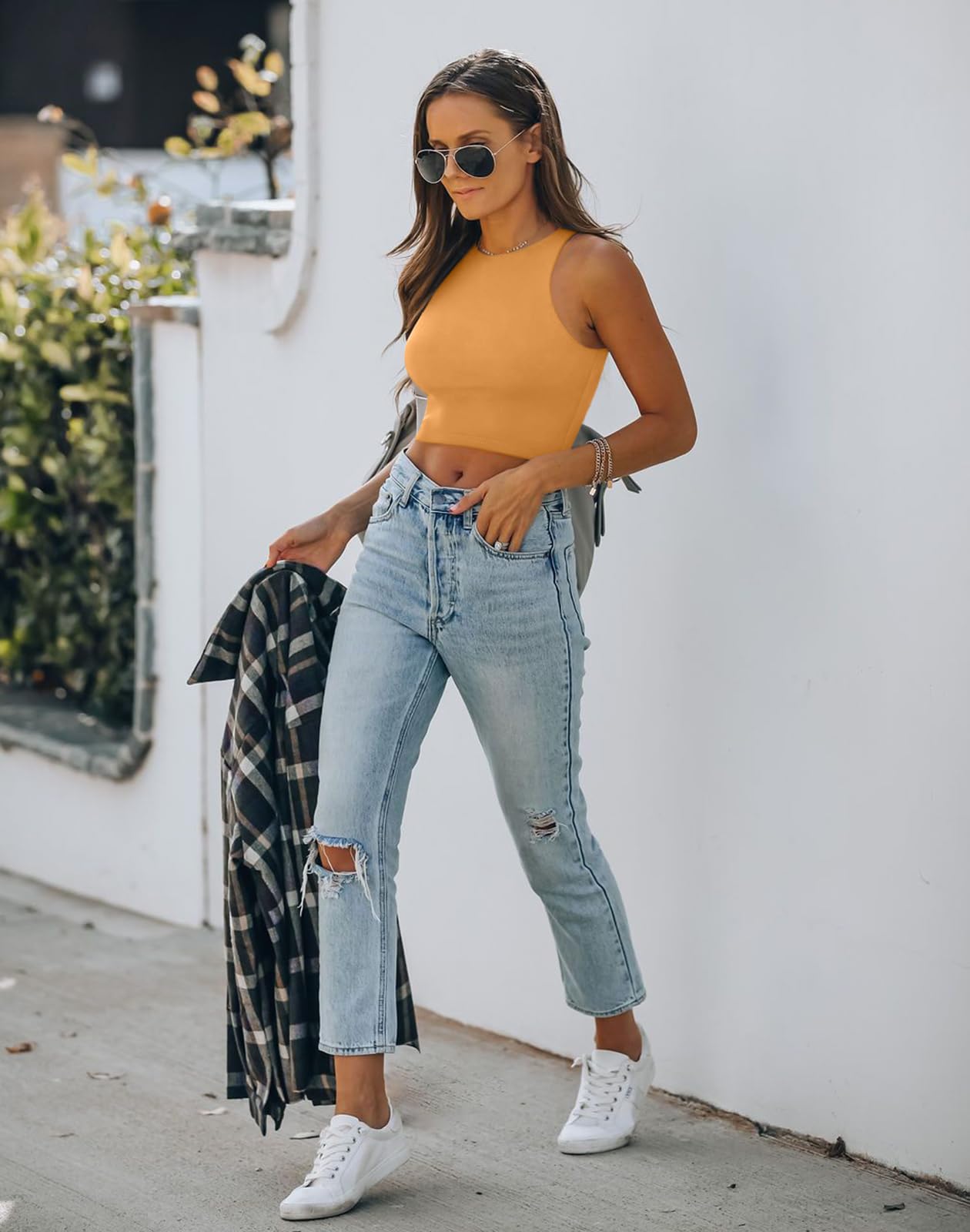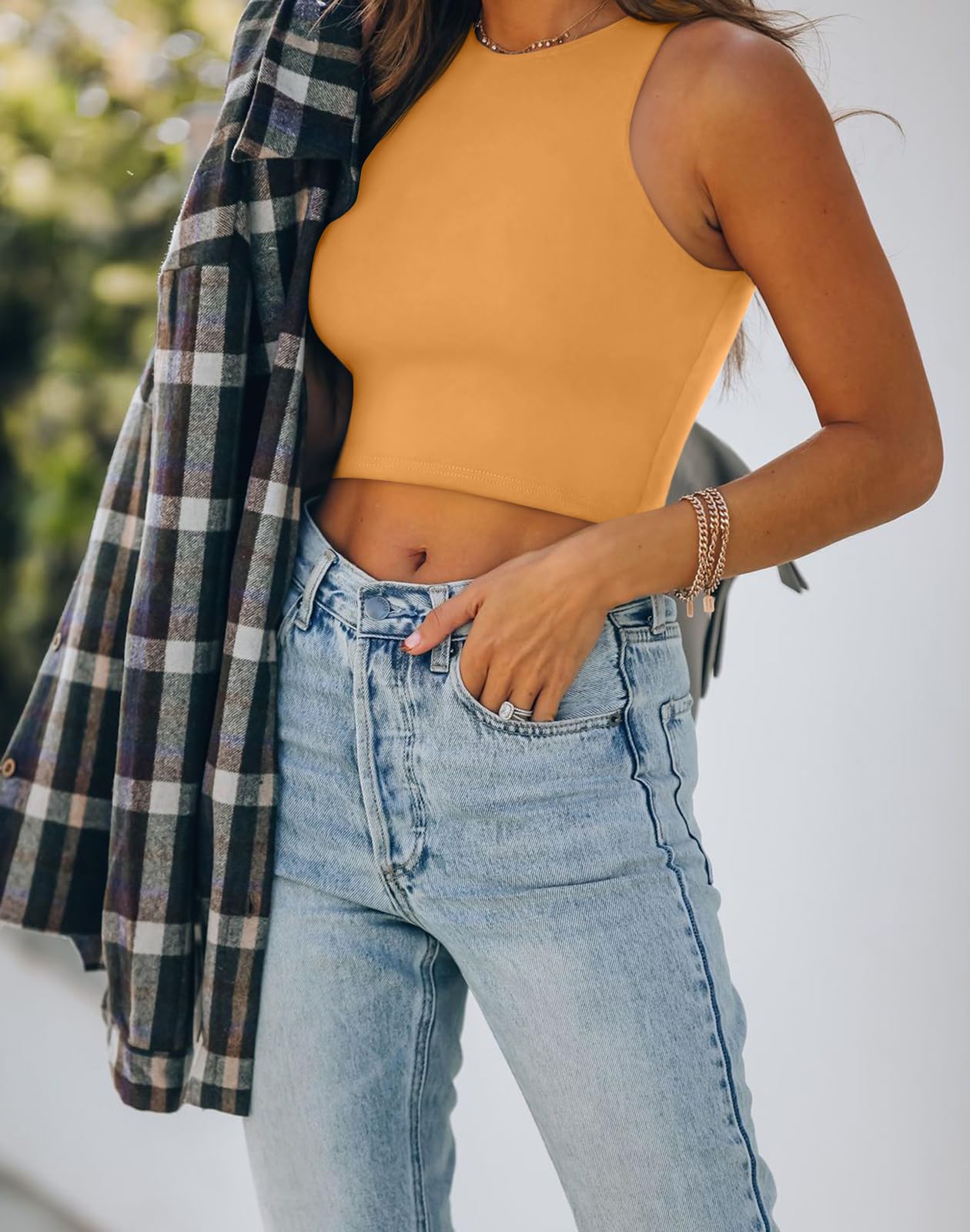 🌸This crop tank tops is quite cute for teen girls and fashion women ladies,feature with high neck,halter neck,double line,racer back,cropped length,solid,tight slim fit,basic style which is bloggers favorite.