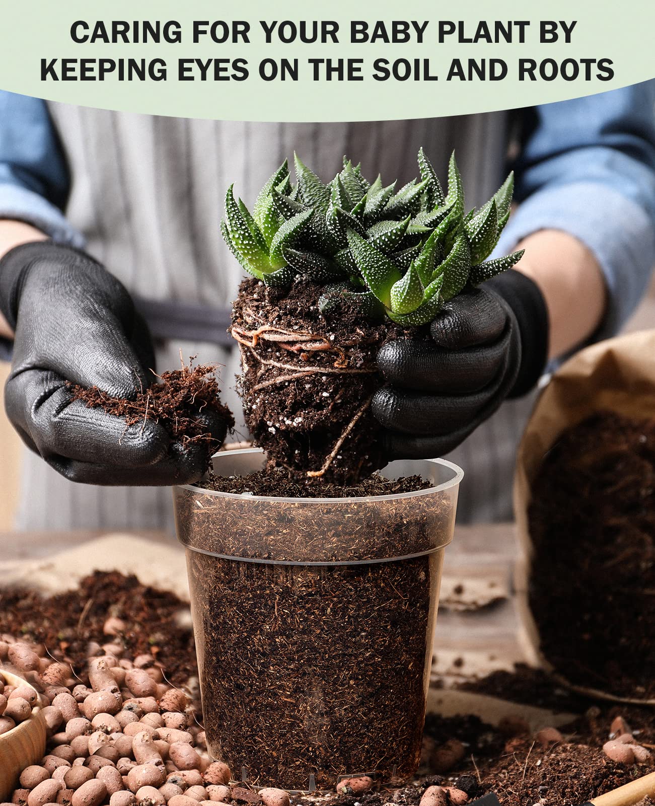 🌻【Abundant Drainage Holes】The bottom of these plastic plant pot comes with unique design drainage holes to keep the soil drained and ventilated, so the transparent planting pots allowing excess water to flow out and preventing root rot. The bottom of the plastic pots for plants are made raised, and the enhanced ventilation can improve the survival rate of the seeds.