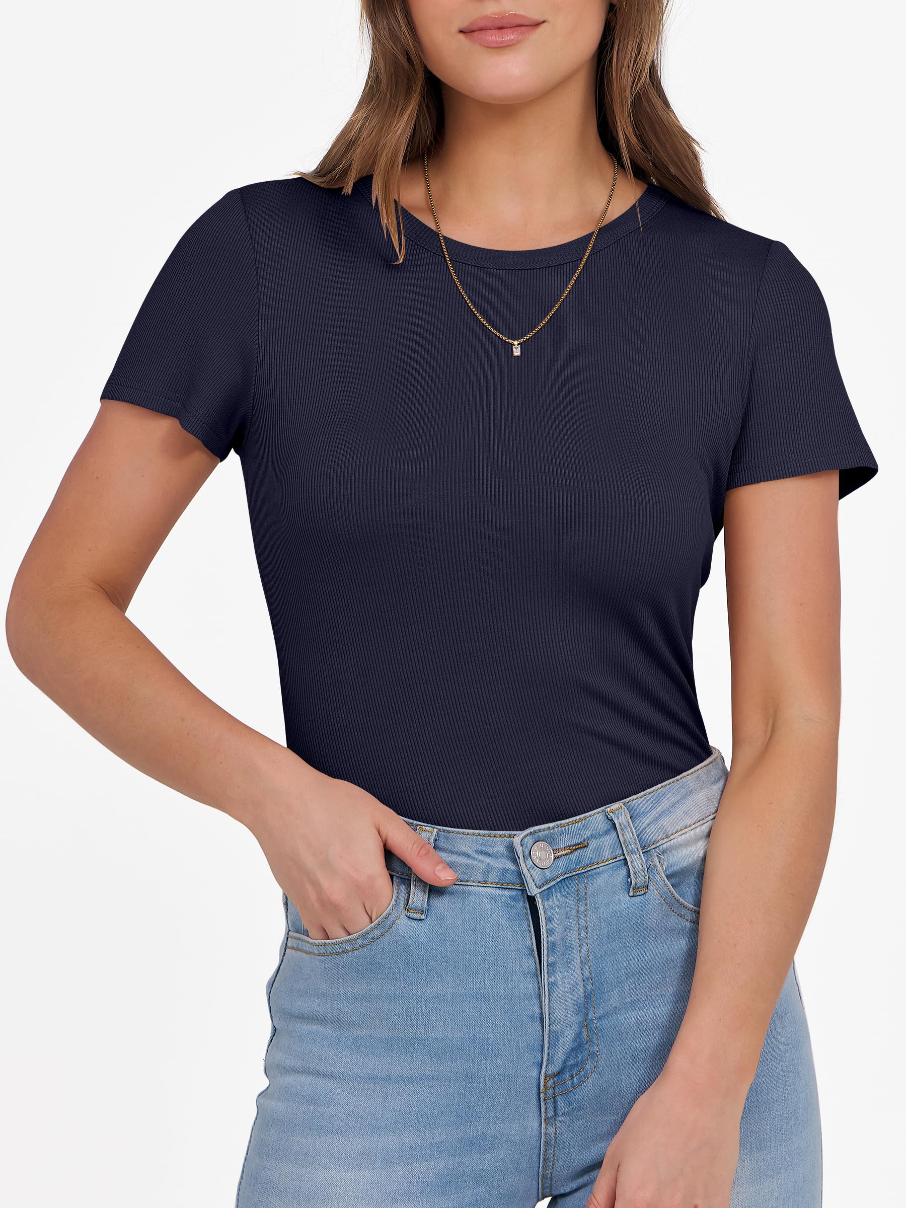 Features - Get summer-ready with our comfy and soft knitted fabric, perfect for all occasions. Our short sleeve crew neck design is versatile - wear it to school, the gym, the beach, or casual daily wear. The slim fit highlights your perfect figure, making you feel confident and stylish wherever you go. Comfortable, lightweight, and oh-so-flattering, our basic summer slim tee is an essential addition to your wardrobe.