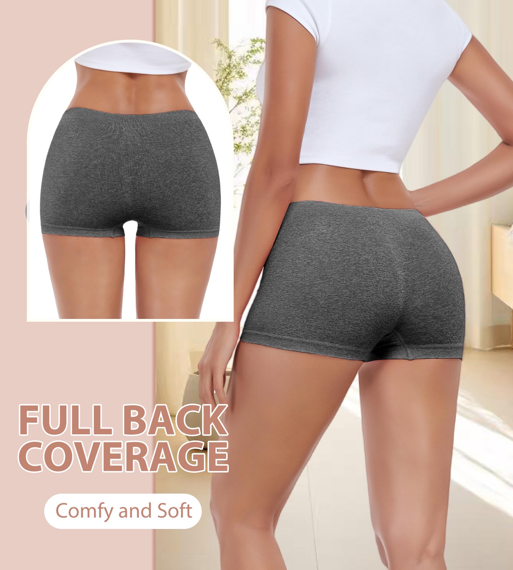 Comfortable and Stretchy Fabric: Our women's boyshort underwear is crafted from an ultra-soft fabric blend that offers superior elasticity and a perfect fit. This material provides a gentle touch against your skin, ensuring comfort and flexibility for all-day wear.
