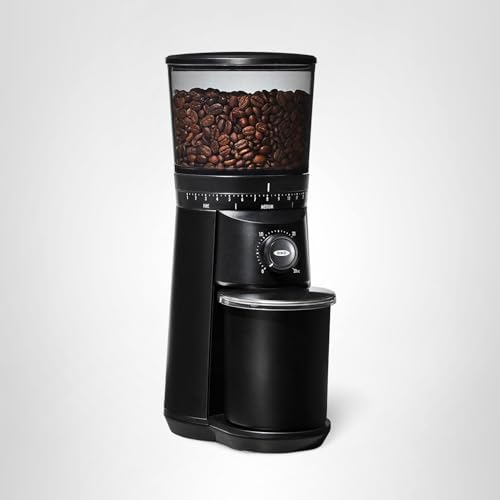 Take your coffee routine to the next level with the OXO Brew Conical Burr Coffee Grinder in Matte Black. Engineered for precision and consistency, this sleek, modern grinder unlocks the full flavor potential of your coffee beans with every grind. The stainless steel conical burrs deliver uniform grounds for optimal flavor, whether you're brewing espresso, French press, or anything in between. With 15 grind size settings (plus micro-settings) and an intuitive dial for selecting grinding time, getting the perfect grind is simple—just push to start. The built-in one-touch timer remembers your last setting for hassle-free brewing. A powerful DC motor preserves the delicate flavors of your beans without overheating them, while the UV-blocking hopper holds up to 12 ounces of coffee, keeping it fresher longer. Finished in a striking matte black, this durable grinder adds modern sophistication to your kitchen or coffee bar.