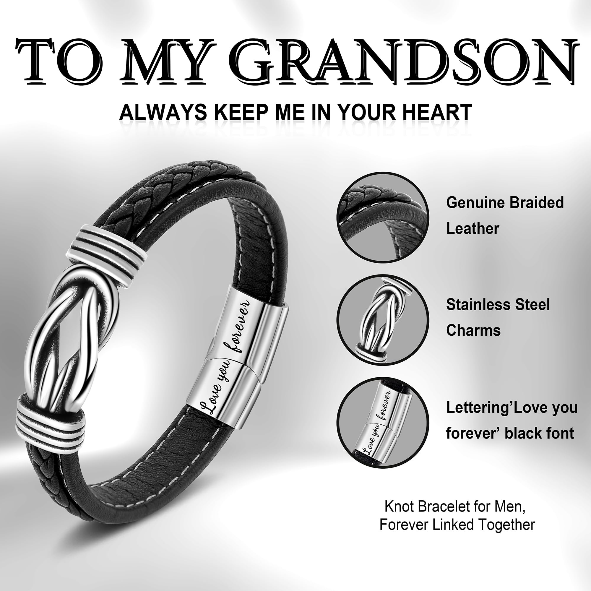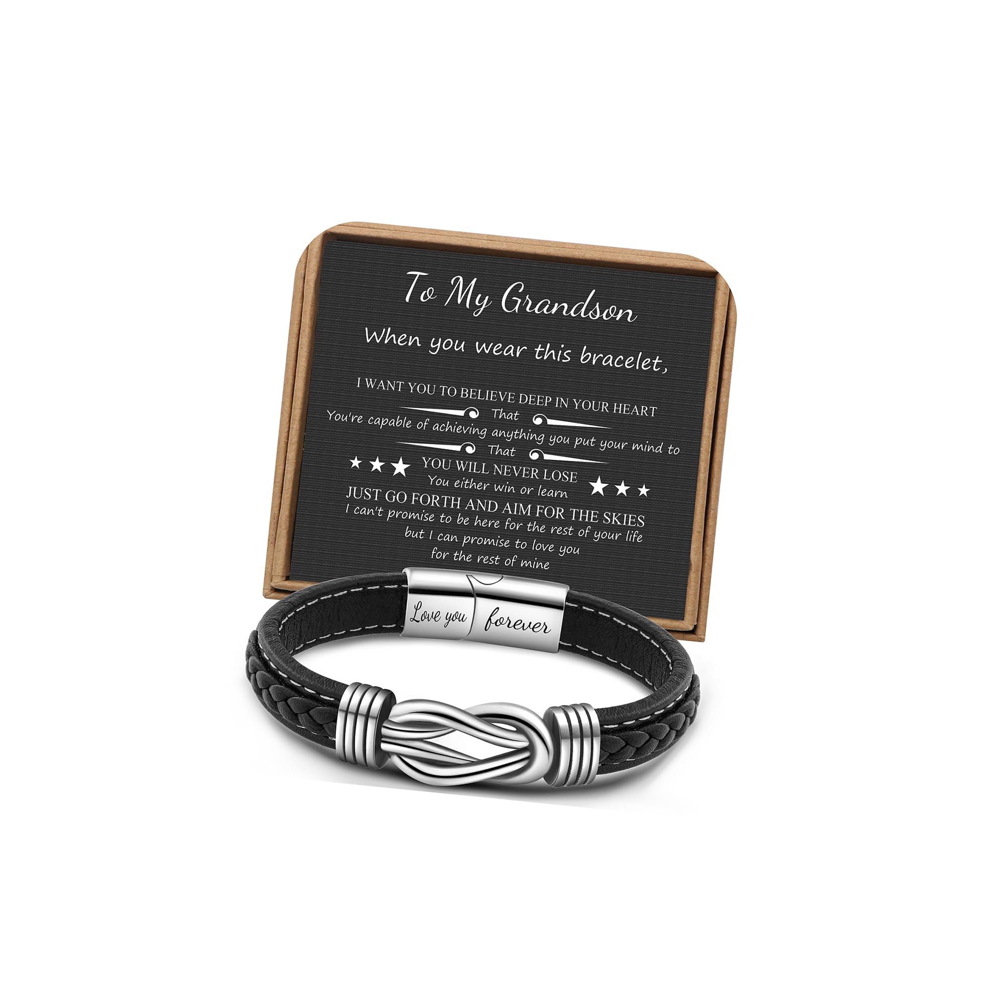🎁【Meaningful Gift for Grandson】This knot bracelet means always linked together, and lettering love you forever. Through this knot bracelet you can directly express your love for him, no matter when, no matter where you will be by his side.
