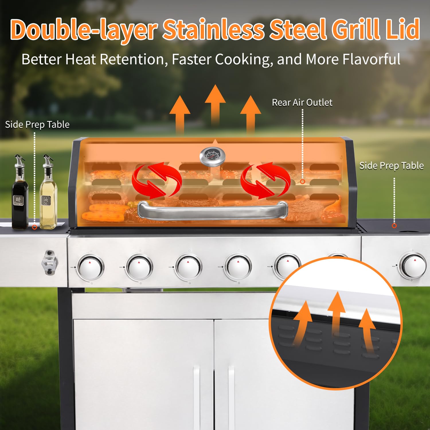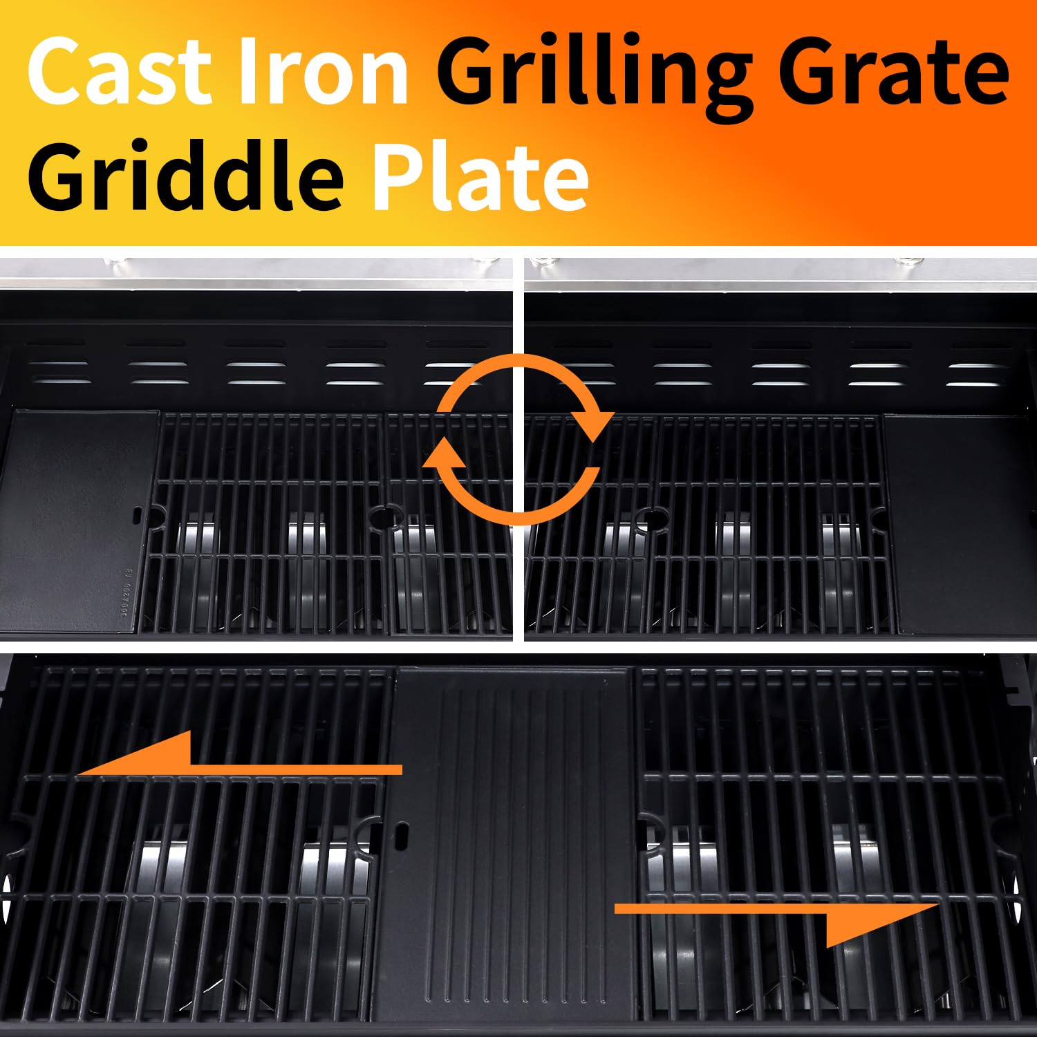 Ultimate Grilling for Crowd-Pleasing BBQs - Feast mode activated! Our expanded cooking zone combines a premium cast iron grate for perfect sear marks, a stainless steel heat distributor for even cooking, PLUS an added griddle plate - because pancakes deserve a spot at the backyard party too. Perfect for hosting game day feasts or summer family reunions.