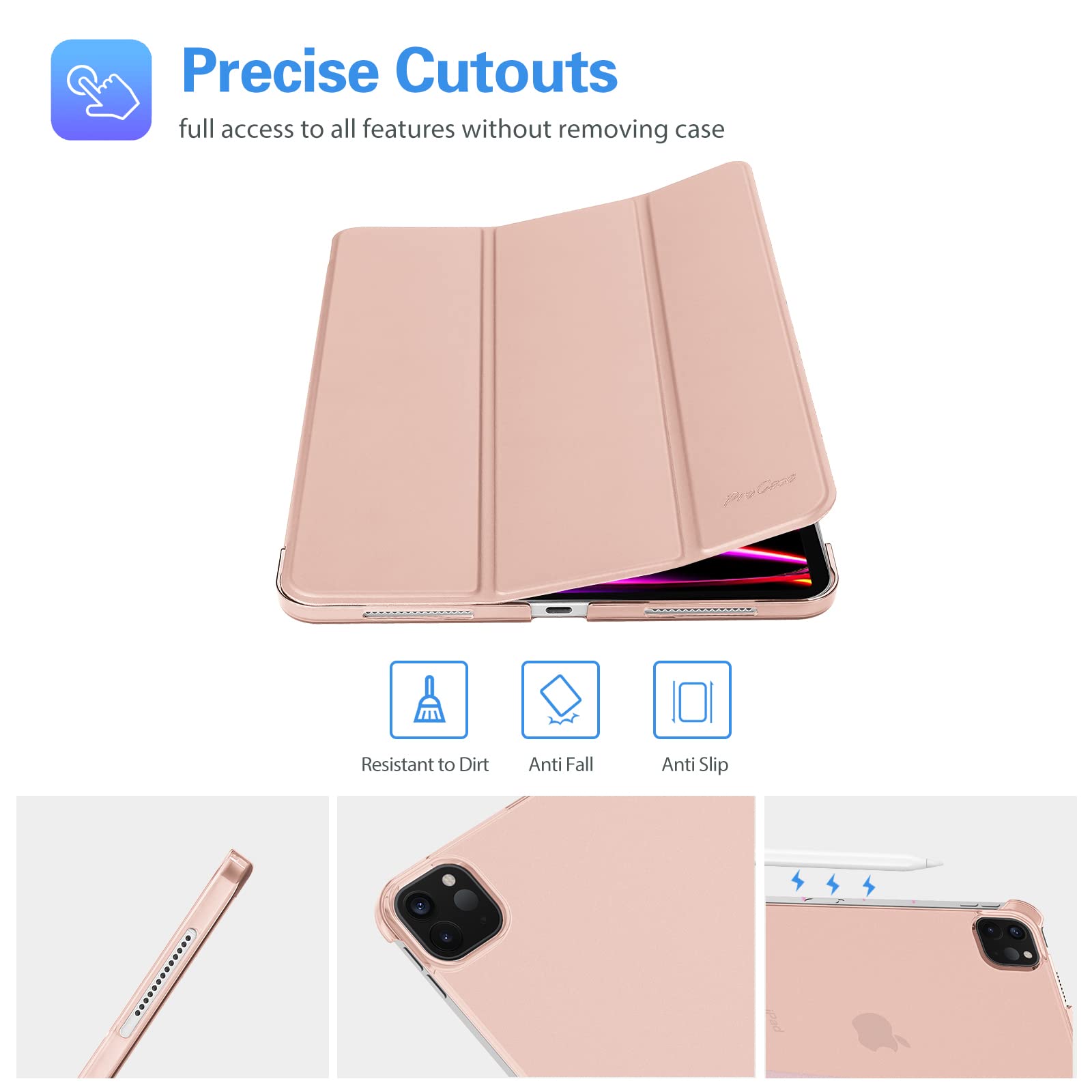 Support 2nd Gen Apple Pencil's magnetic attachment and wireless charging; Support auto Sleep/Wake feature; Magnet secures the case closure, easy snap on and off