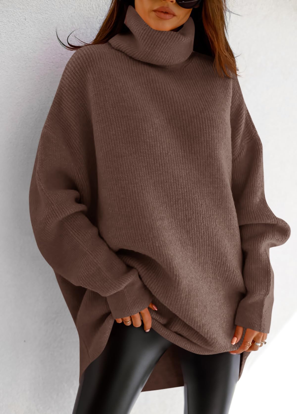Feature:simple and cozy style, cowl neck or turtleneck, drop shoulder and batwing sleeve, loose fit, solid color