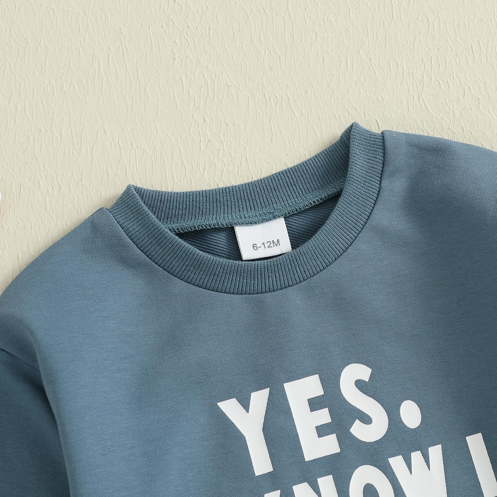 DESIGN:Long sleeve funny letter print pullover sweatshirt matching with solid pants, super trendy