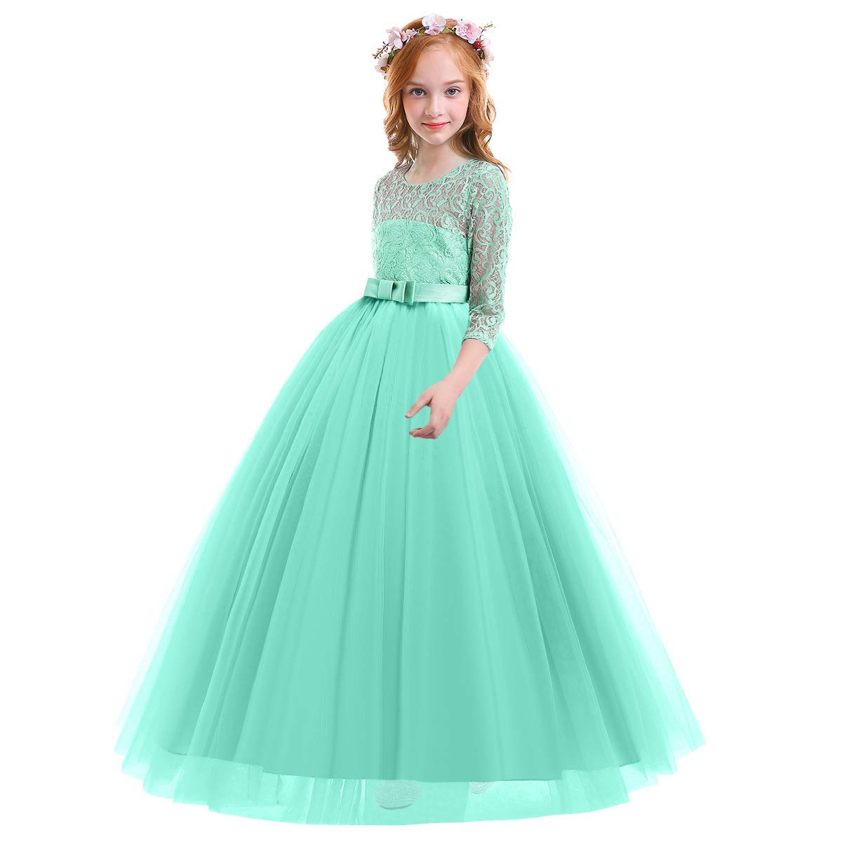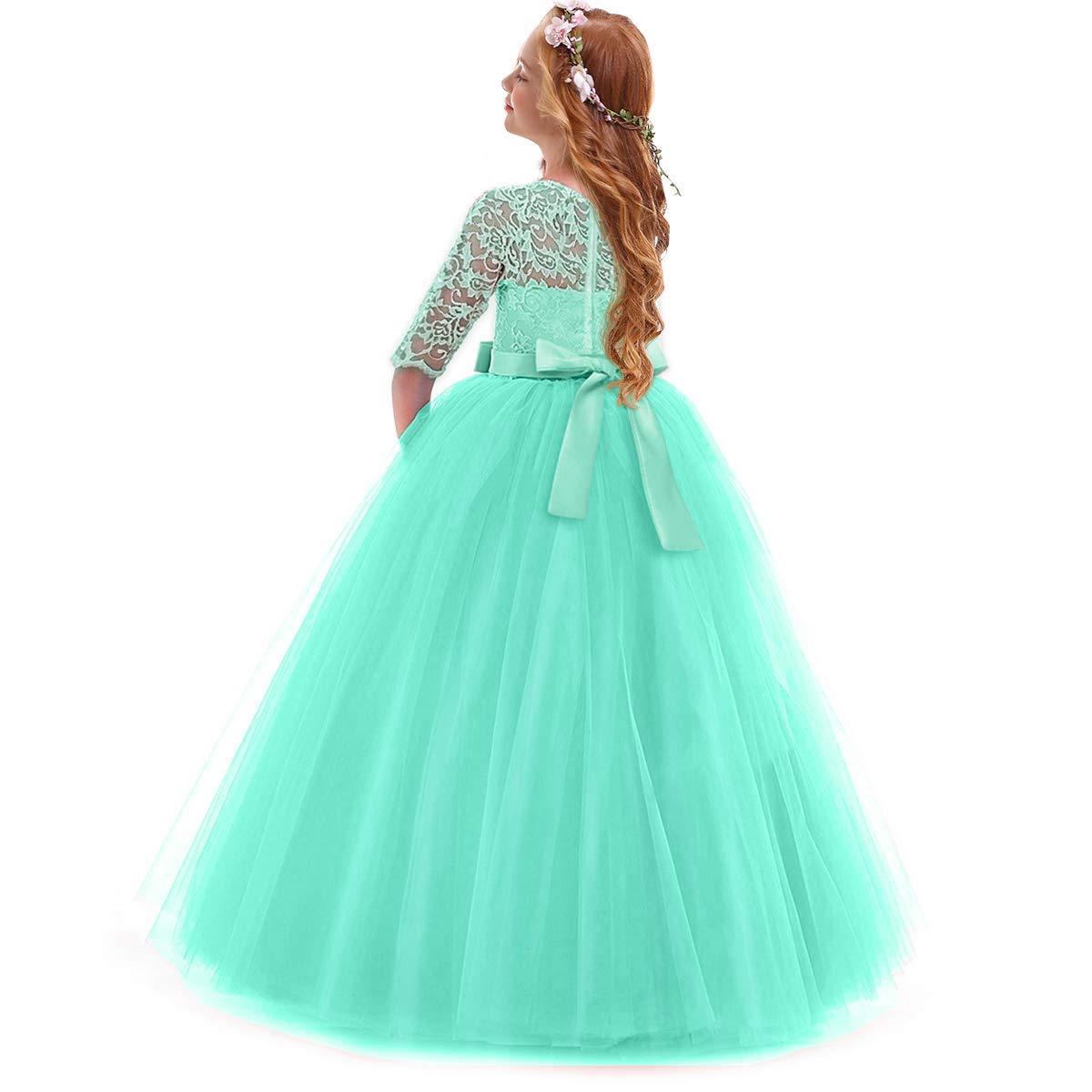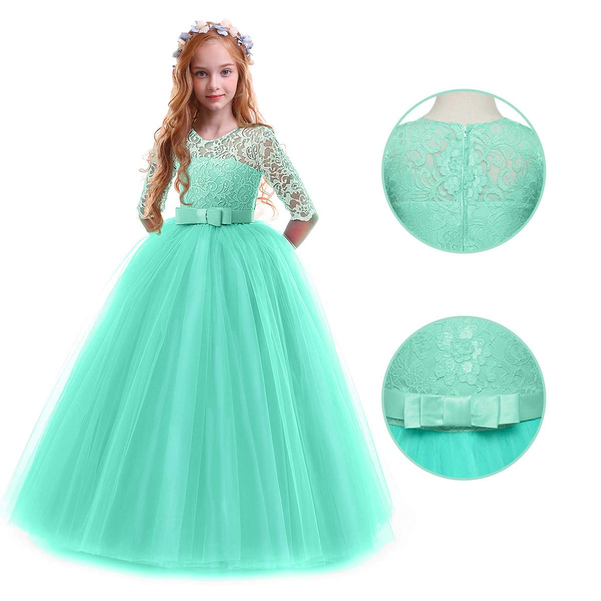 Design: Elegant flower girls dresses for weddings princess formal long maxi evening prom ball gown birthday party full length dress for kids junior girls, floral lace, hidden back zipper closure, featuring beautiful design. Your little princess will be thrilled with this gorgeous floral lace bow layered tulle tutu dress.