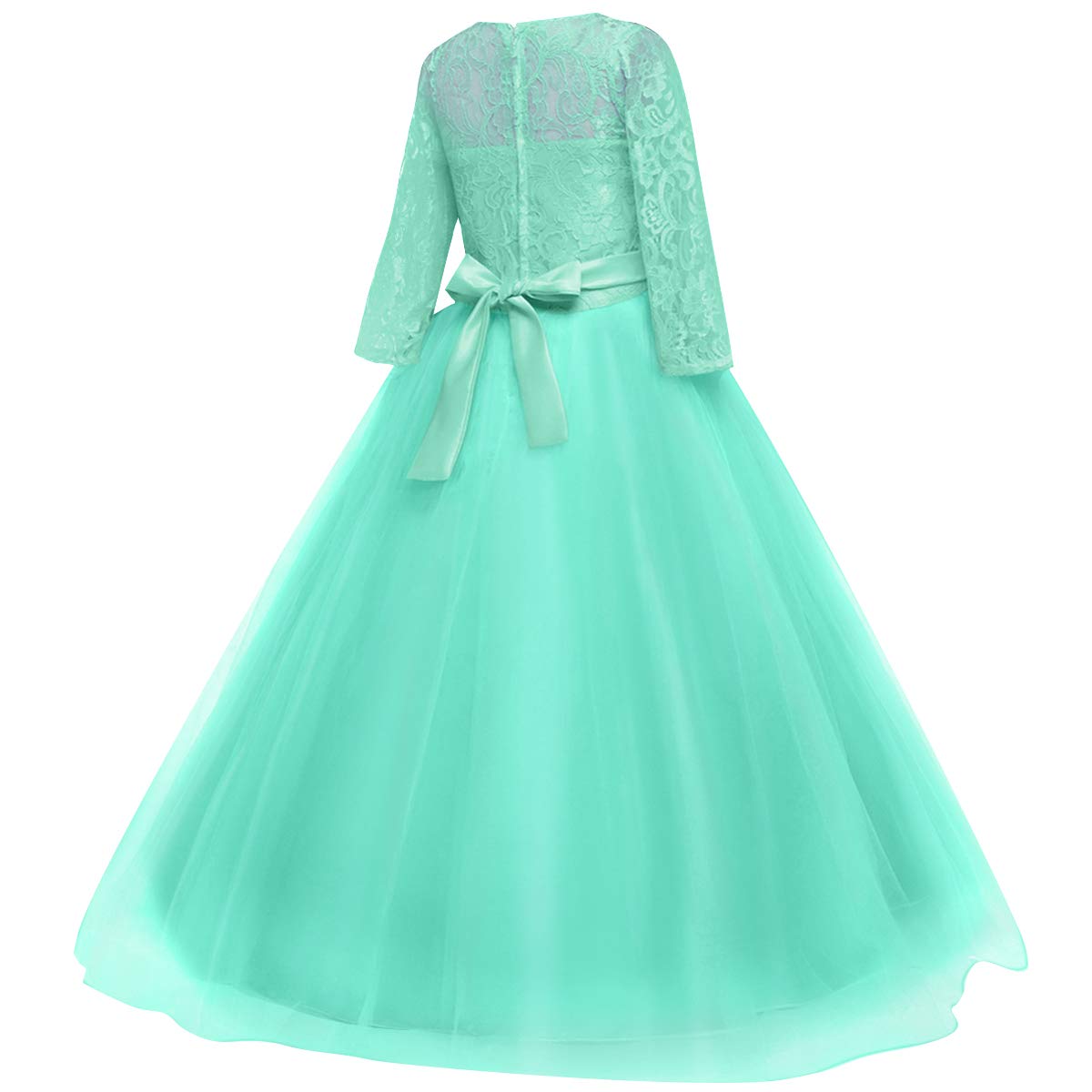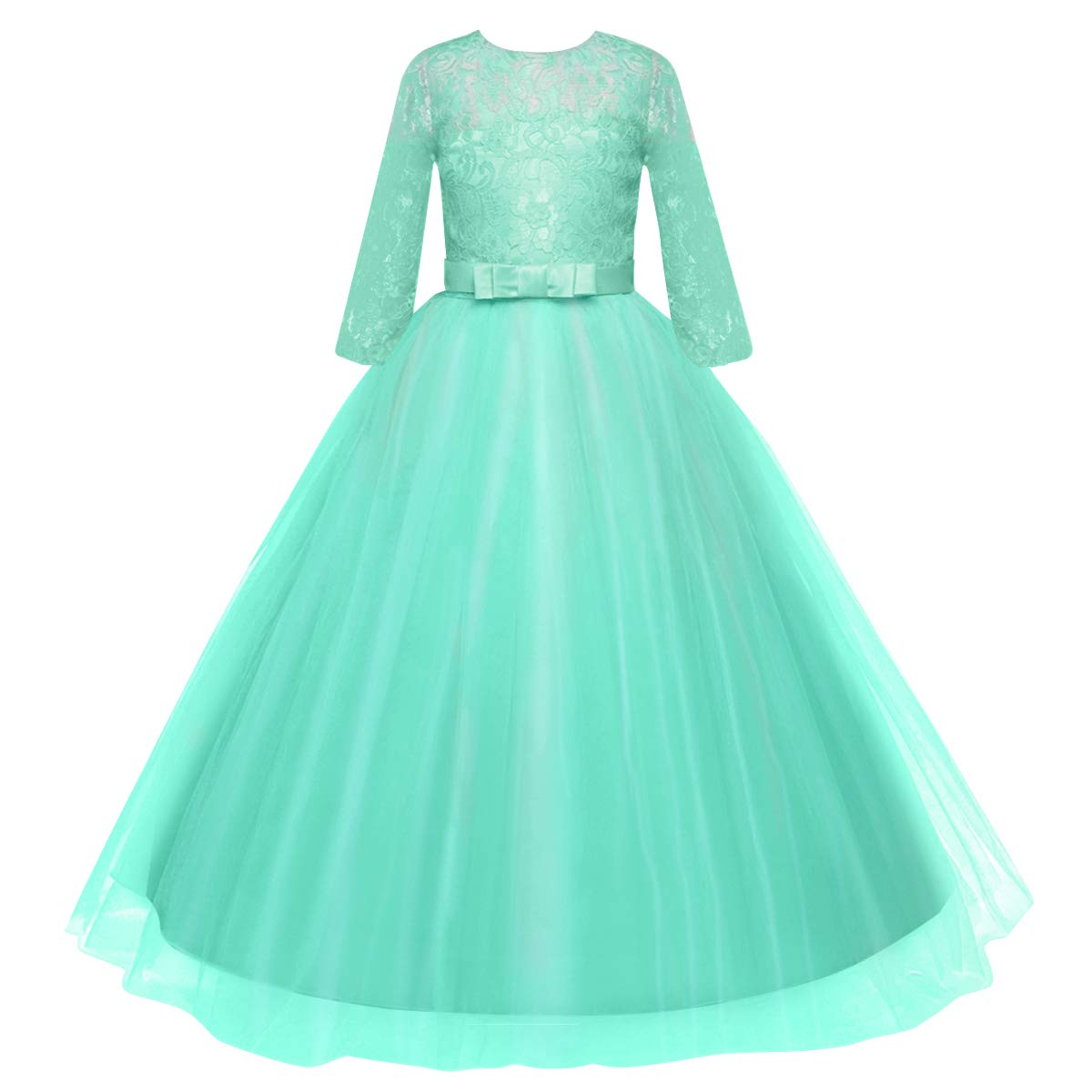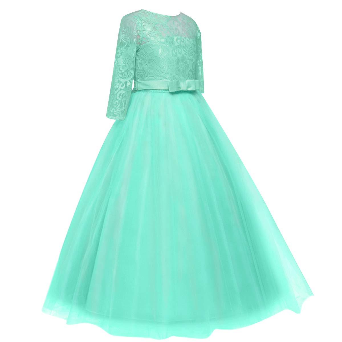 Size: Flower girls lace long maxi dress available for 2-14 Years child girl.Please refer to our size information in the below product description or the left picture for Detail Size Chart before ordering. Junior bridesmaid dresses for girls. Tulle lace layered dress with delicate flower and bow make your sweet princess to be the most graceful and shining girl in the crowd. Beautiful design features a chic style for your young baby and make your little fairy look so distinctive.