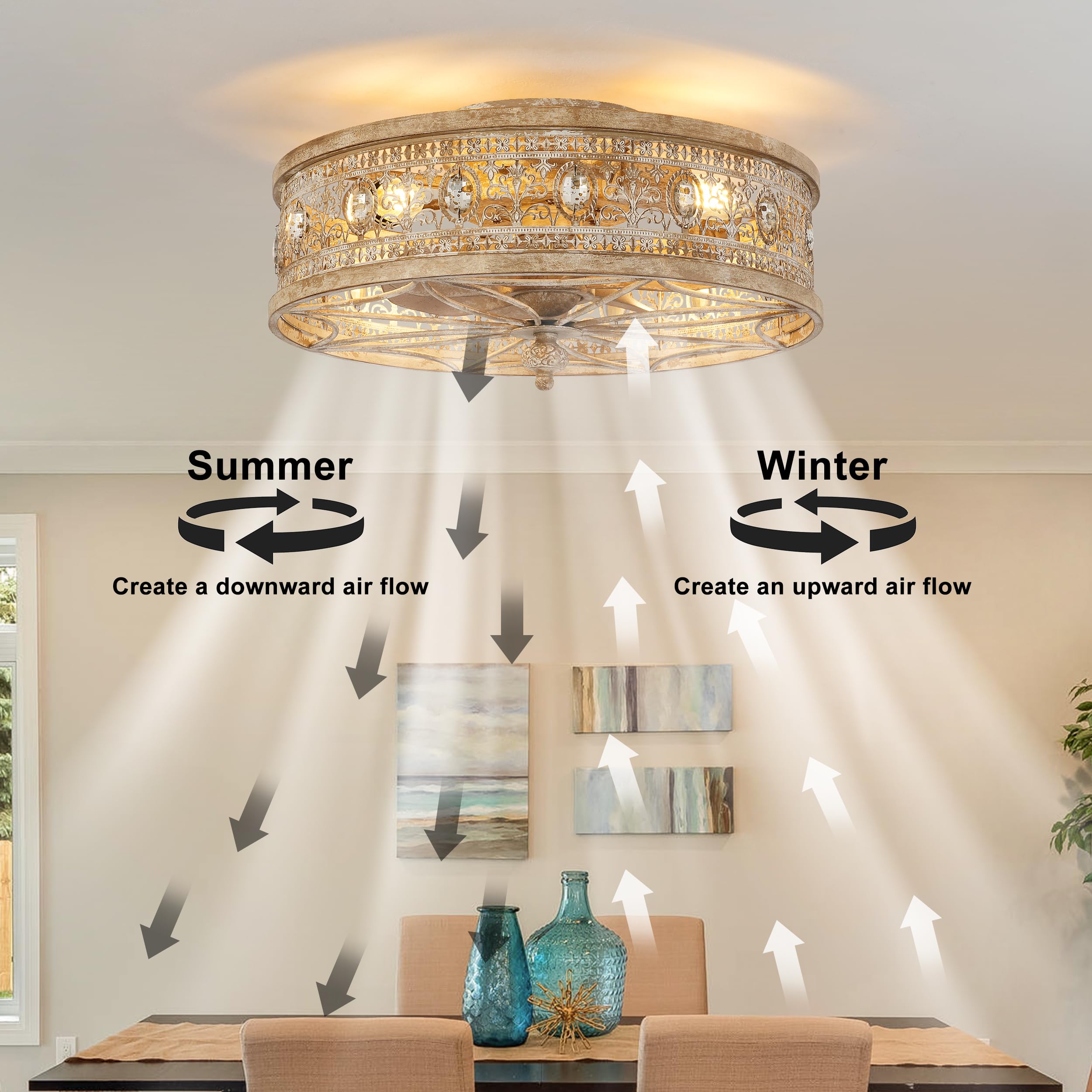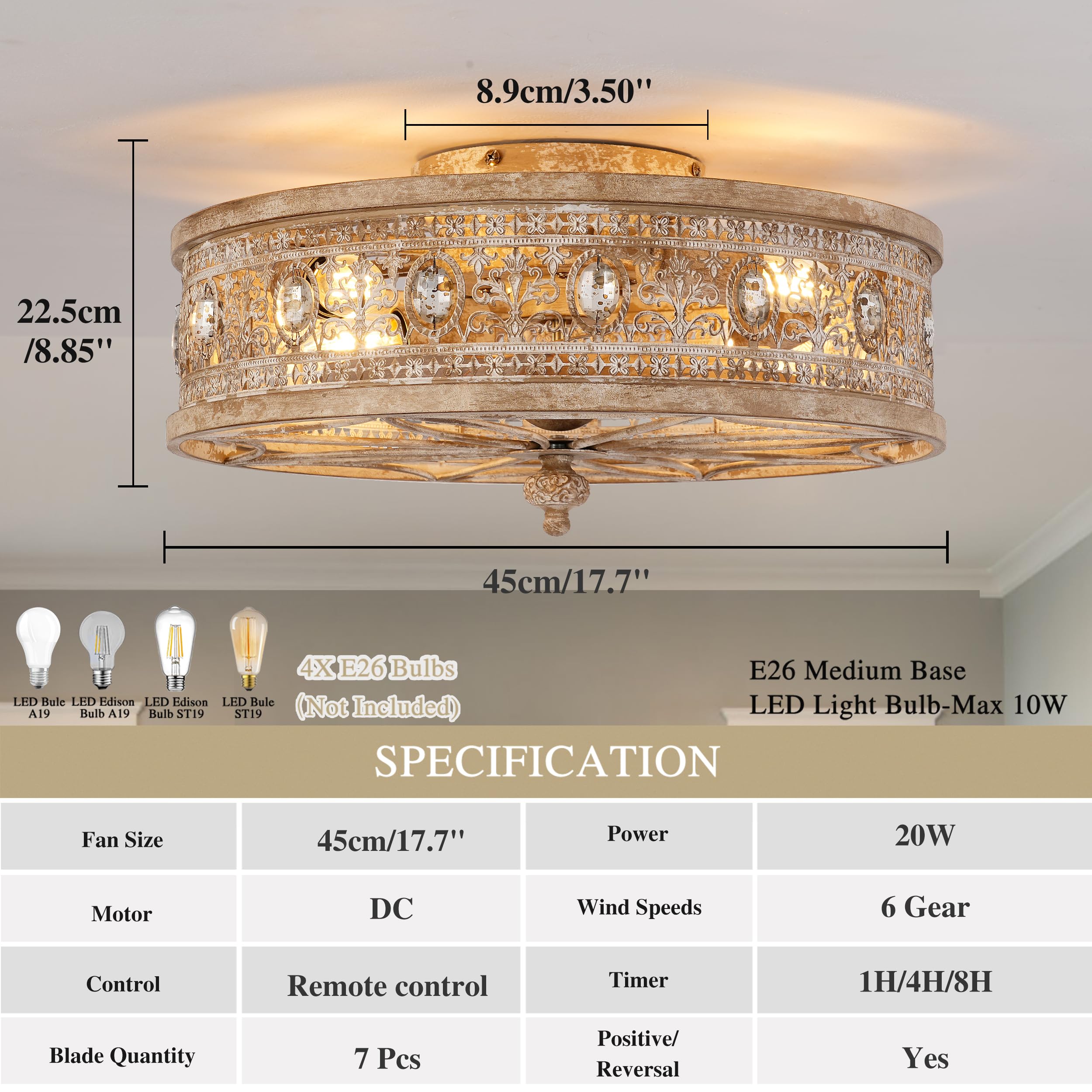 ๐๐๐๐๐ฅ ๐๐จ๐ซ ๐๐ฆ๐๐ฅ๐ฅ ๐๐ฎ๐ฌ๐ญ๐ข๐ ๐๐๐๐ซ๐จ๐จ๐ฆ๐ฌ, ๐๐ง๐ญ๐ซ๐๐ง๐๐๐ฌ & ๐๐จ๐ญ๐ญ๐๐ ๐ ๐๐จ๐ซ๐ง๐๐ซ๐ฌ:Perfect for farmhouse hallways, small bedrooms, foyers, and warm reading nooks. A compact small ceiling fan with light that enhances rustic dรฉcor.