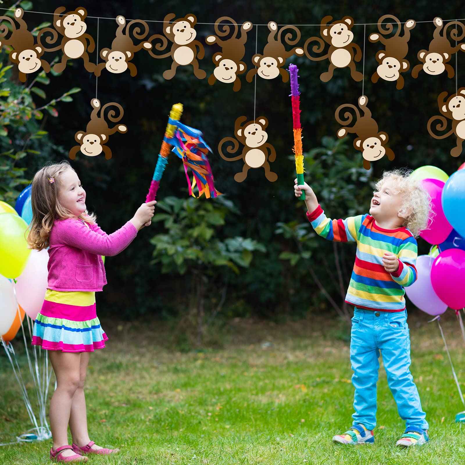 Detachable and Reusable: the monkey paper cutouts can be hung with the rope on the ceiling, branches, windows, doorways or tents; You just need to string the rope through the cards and easily hang and remove the jungle theme birthday decorations, which are reusable for the next party