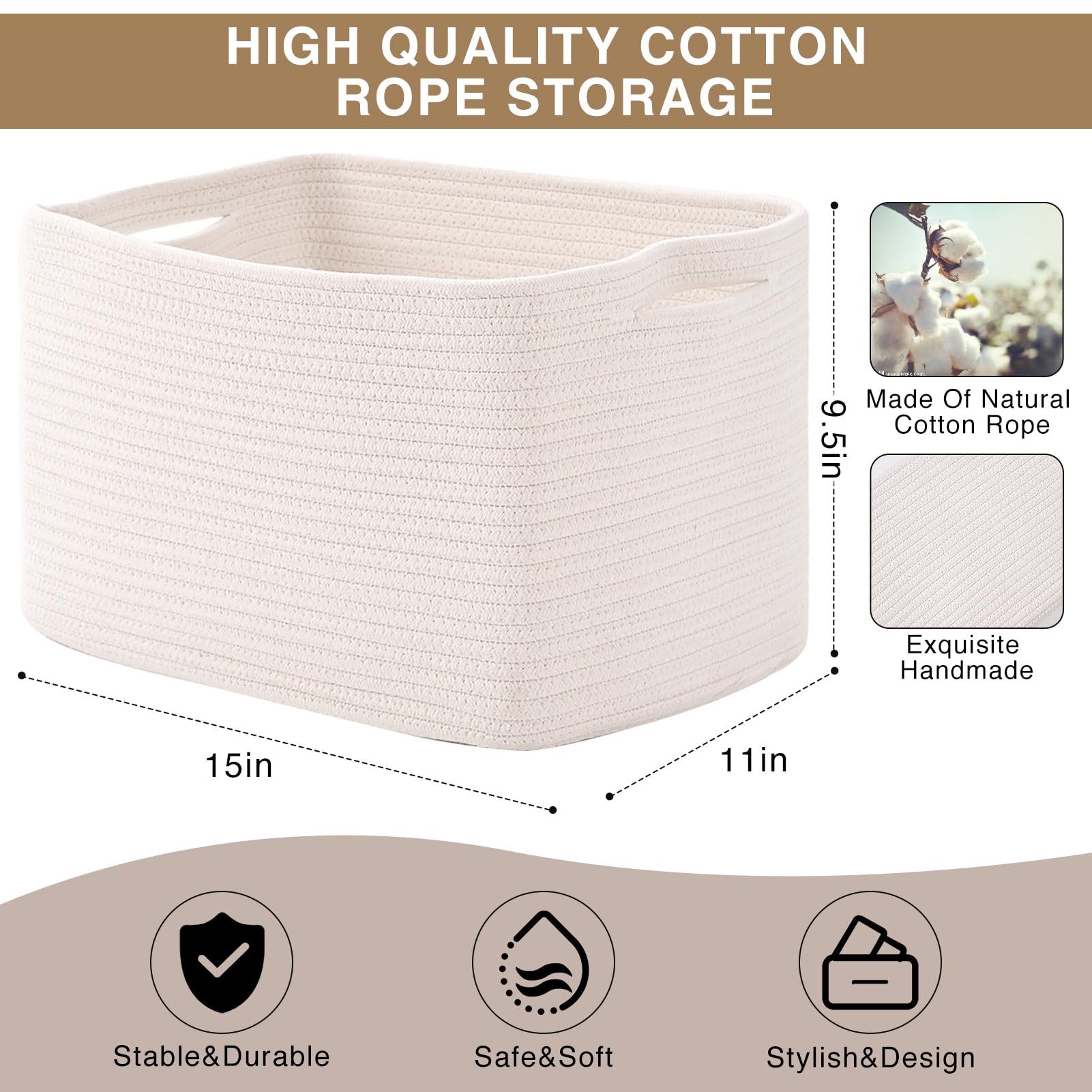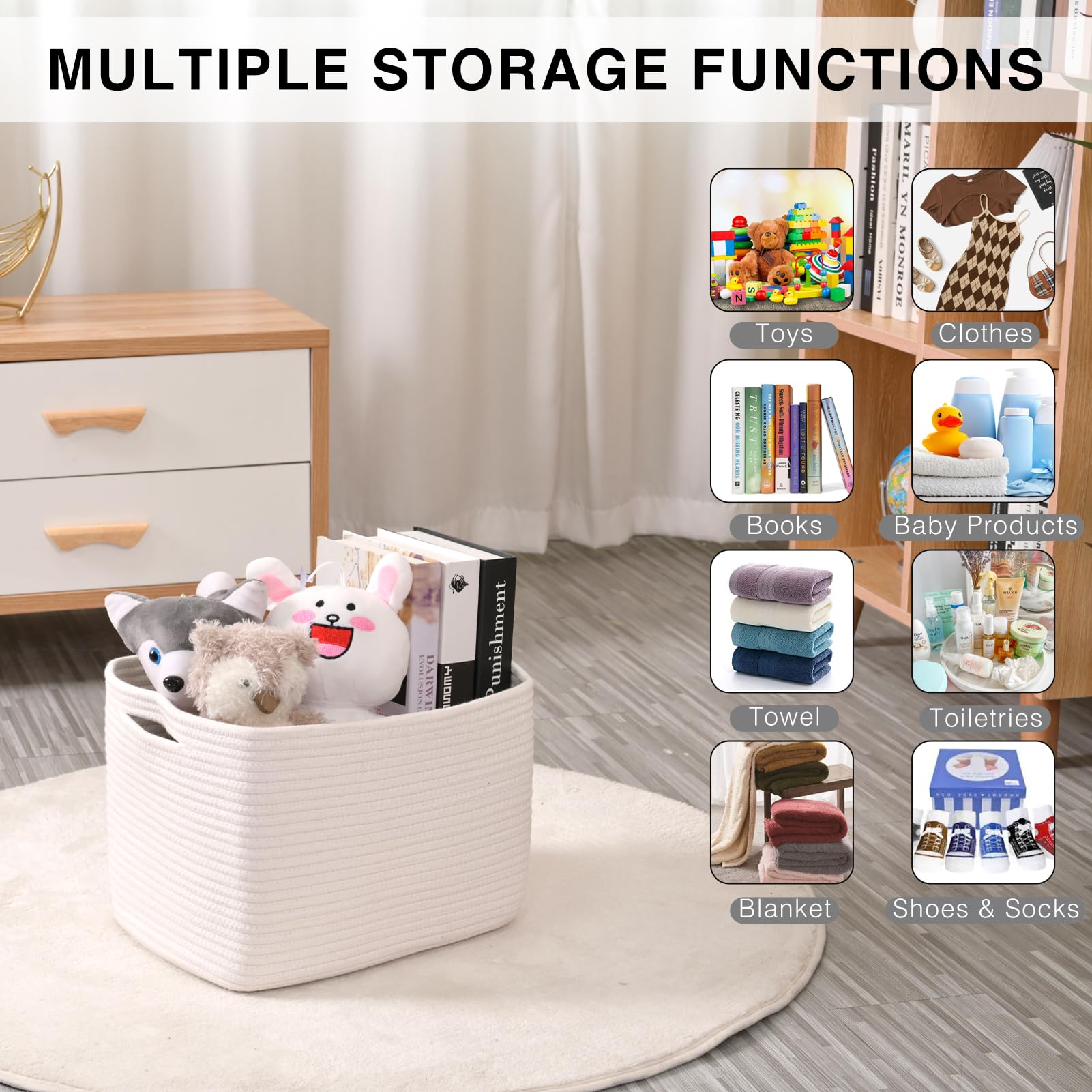 Multi-functional Design: Our storage basket is the perfect solution to tackle everyday clutter. It accommodates various items such as clothes, toys, books, and cosmetics, helping you maintain a tidy and organized living space