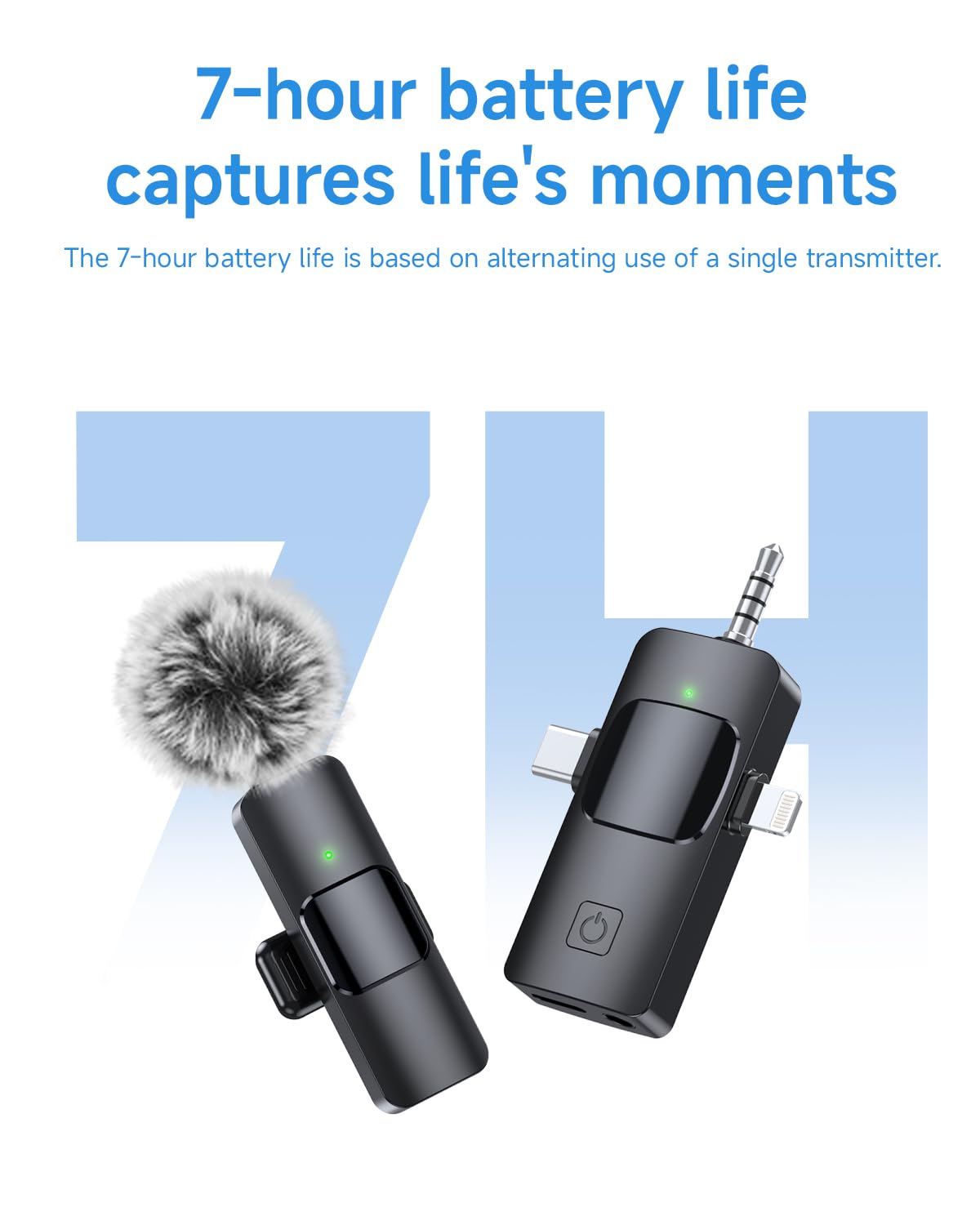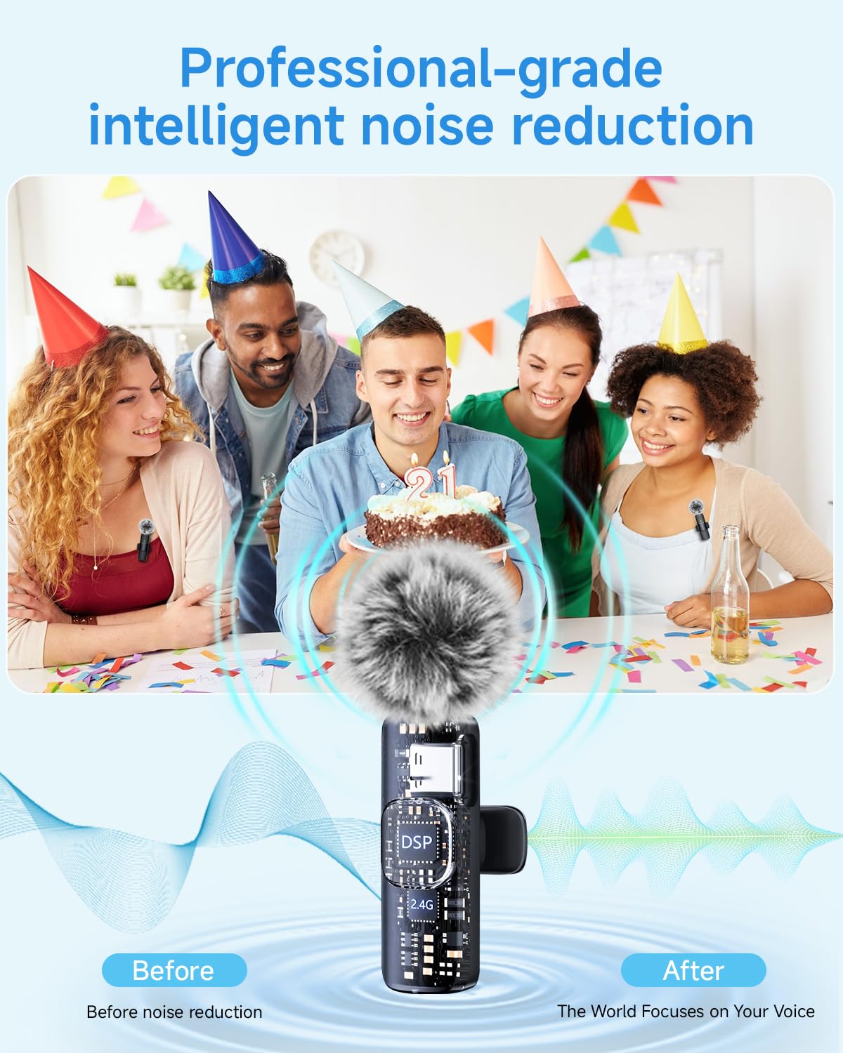 Crystal-Clear Microphone for iPhone & Podcasting: Engineered for content creators, this wireless lapel mic delivers studio-quality audio with advanced noise reduction. Capture every word with zero distortion—perfect for podcasting, interviews, and professional recordings. Includes two windproof foam covers to guarantee crisp sound in any environment.