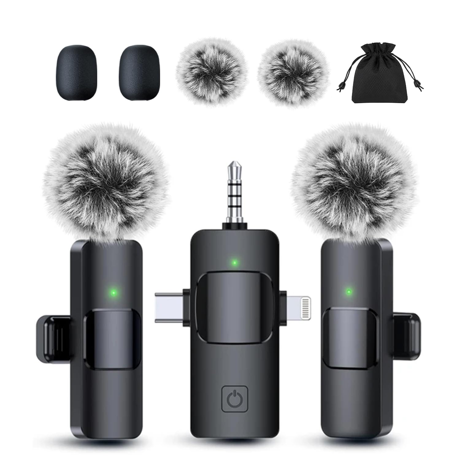 Complete Wireless Microphones Bundle for Content Creation: Whether you’re streaming, vlogging, or recording vocals, this lapel microphone bundle delivers flawless audio across platforms. A must-have content creator essential for YouTube, TikTok, podcasts, and beyond—elevate your sound and stand out with clarity.