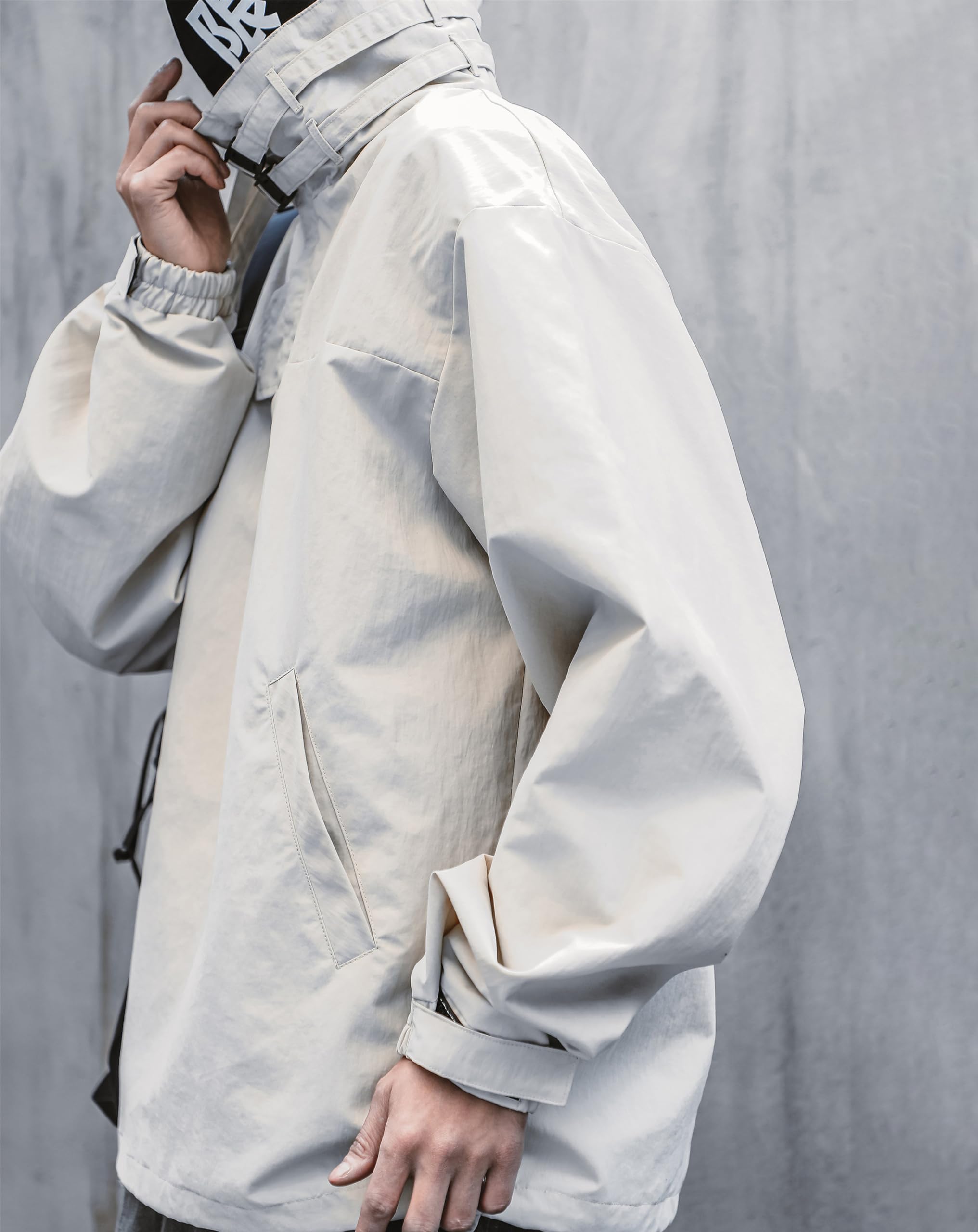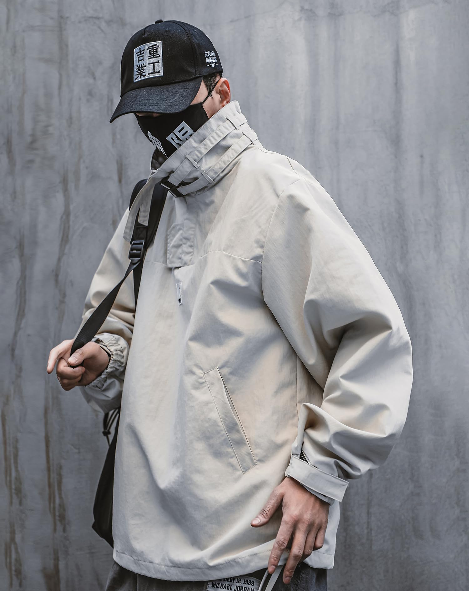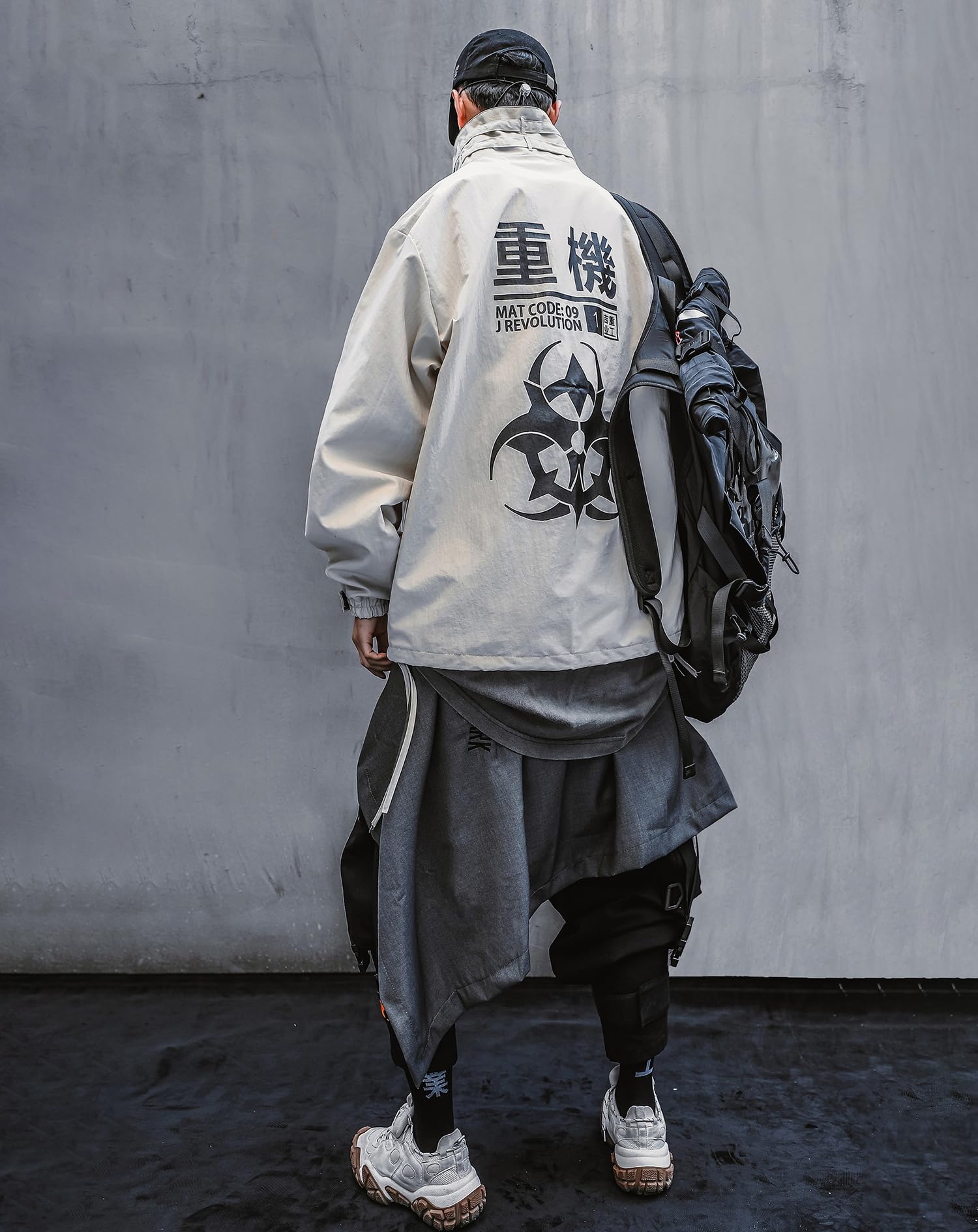 This techwear jacket Made from high-quality polyester material for durability and comfort.