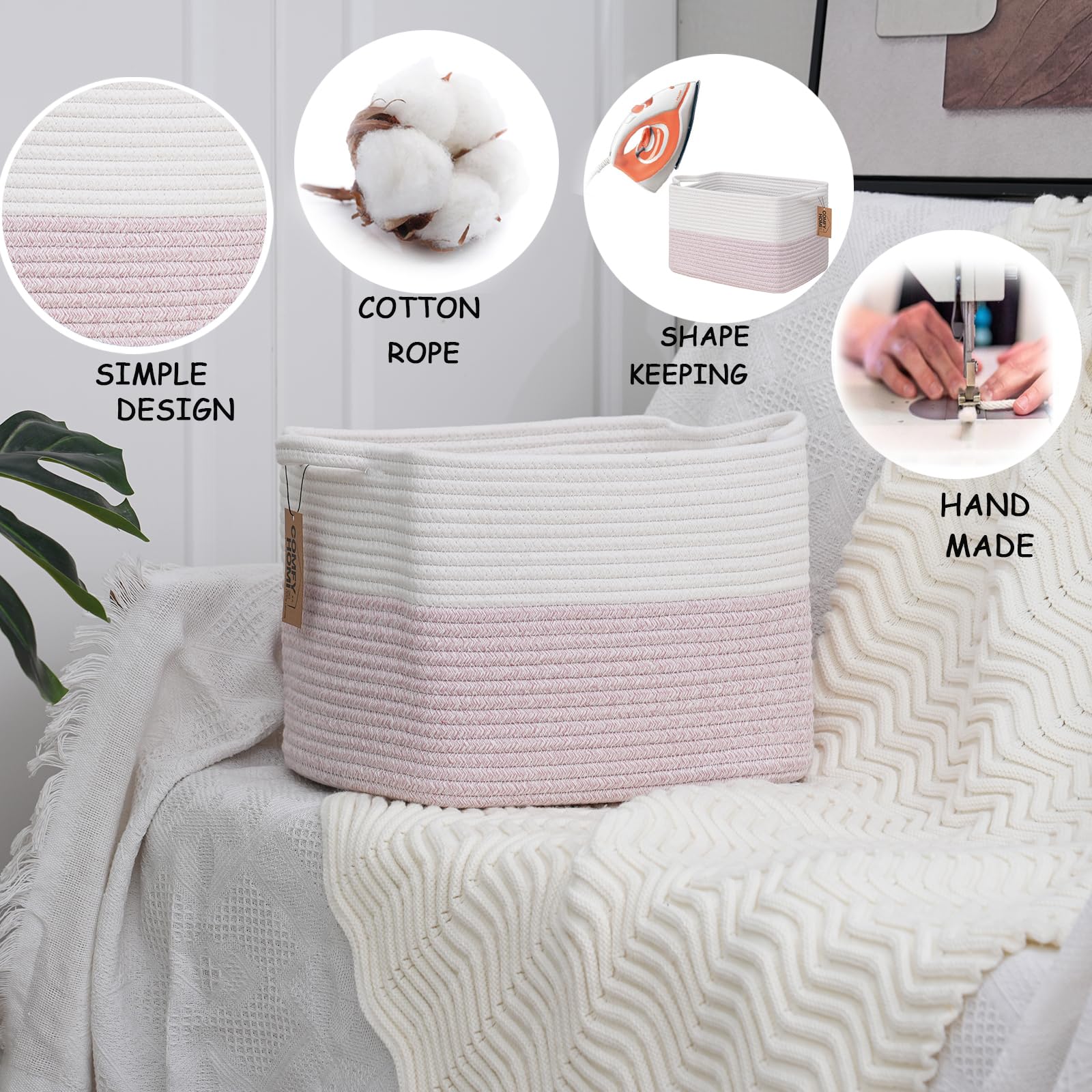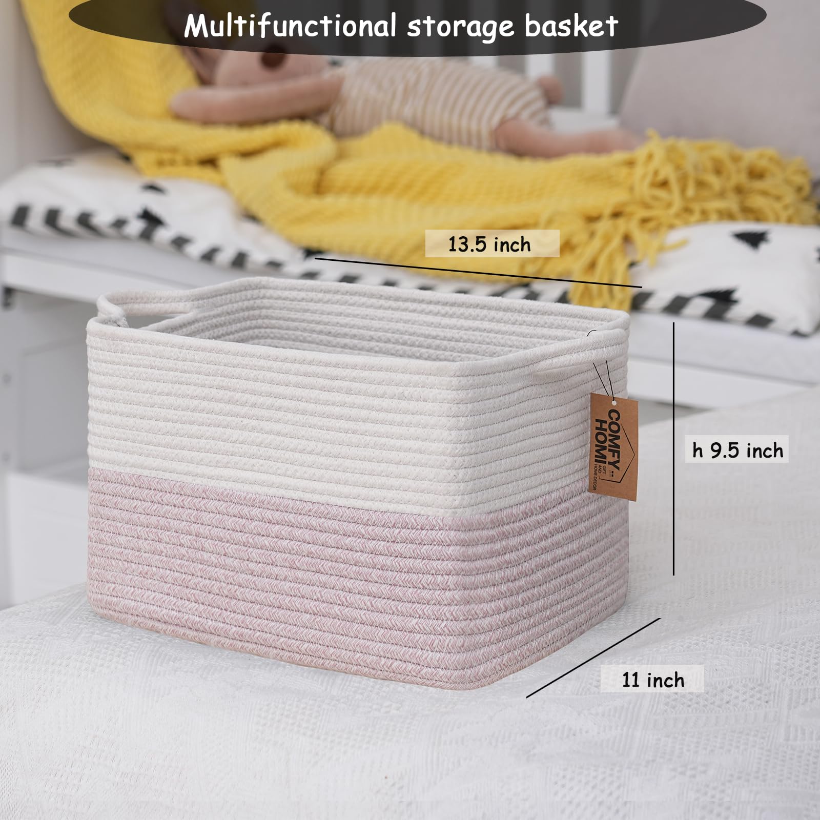 MEDIUM BASKETS FOR ORGANIZING: 13.5''Lx11''Wx 9.5''H, Cotton rope baskets can be used in baby room, kid’s room, nursery, living room, bathroom, office. And are very ideal for storing books, toys, clothes,towels. It's a great way to store them out of sight