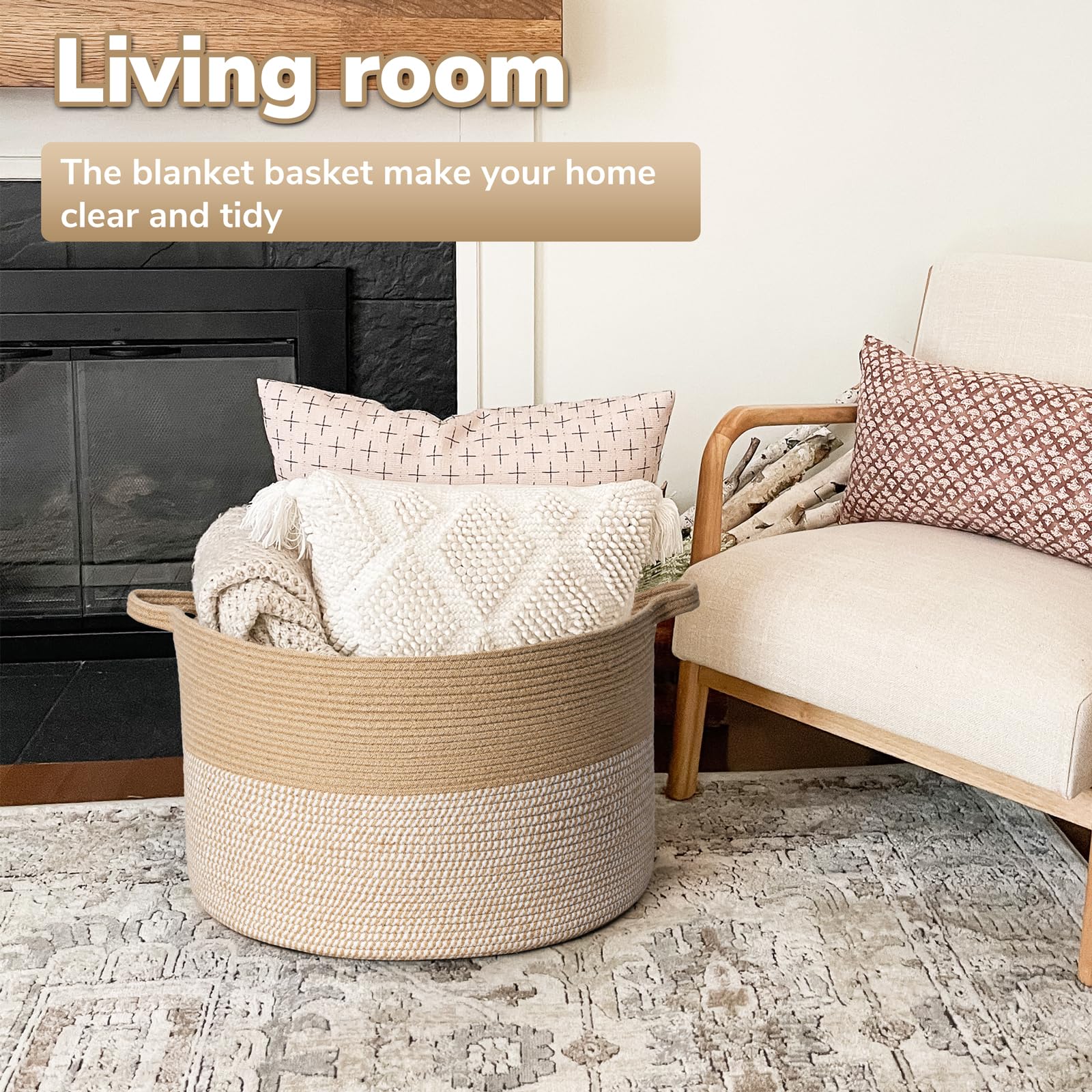 Large Blanket Basket. Measuring 21.7 x 13.8 inches, this large basket serves a variety of purposes - use it as a blanket storage, laundry hamper, or for organizing toys and books