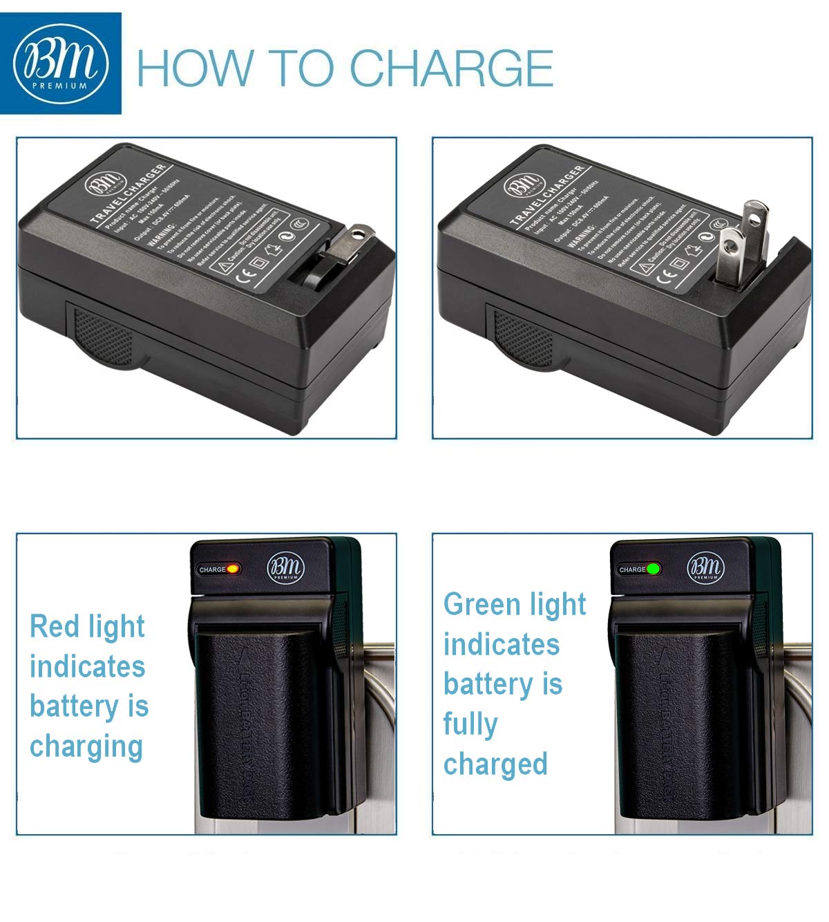 High quality battery charger is a handy companion for digital shooting. Charger is designed with a fold-able A/C plug that charges your camera / camcorder battery anywhere in the world. - Quick charge with automatic constant current control prevents battery from overcharging, short circuit, and electronic shock. Smart LED indicator shows charging status.