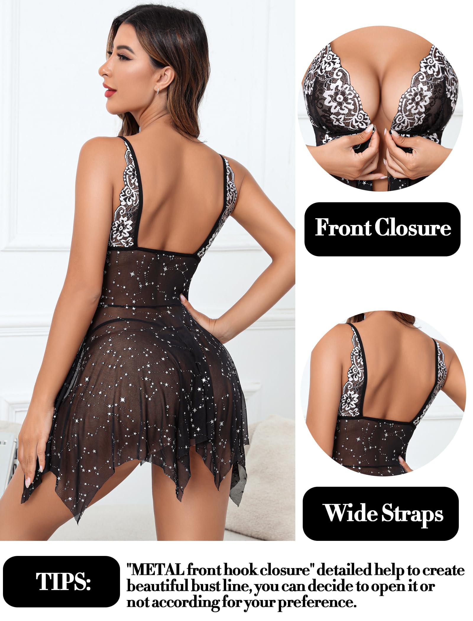 Lace chemise lingerie features front closure styling to show off your adorable bump, and will not bind your belly,which make this sexy lingerie a great choice for pregnant women.The detailed "METAL front hook closure" helps create a beautiful bust line, and you can decide whether to open it or not according to your preference.