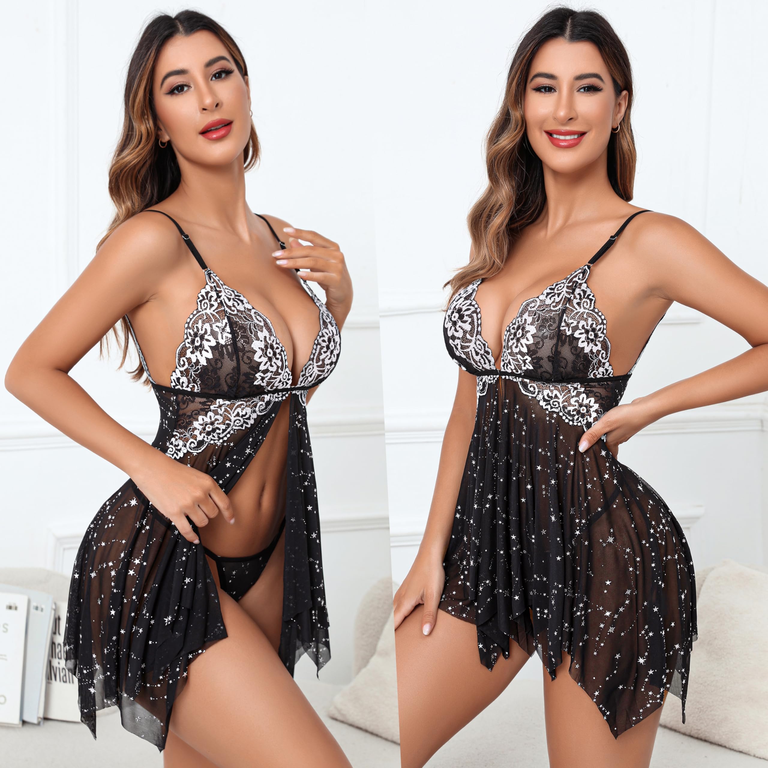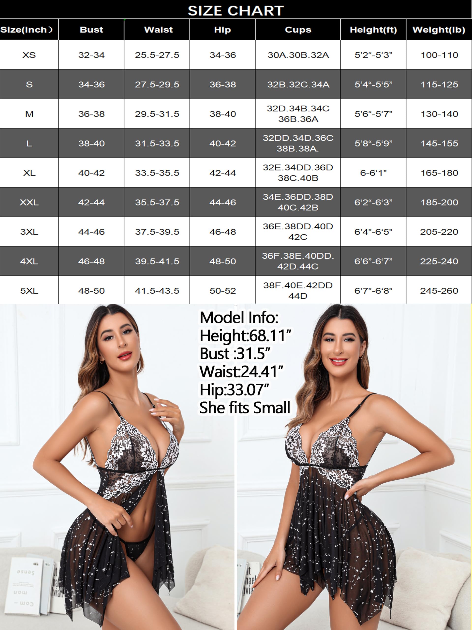 Package Content: 1 x Women Lingerie Babydoll, 1 xG-String. Garment Care: Hand washing or machine washing with lingerie bag, max 40 degrees celsius, Hang to dry, Iron with press cloth.