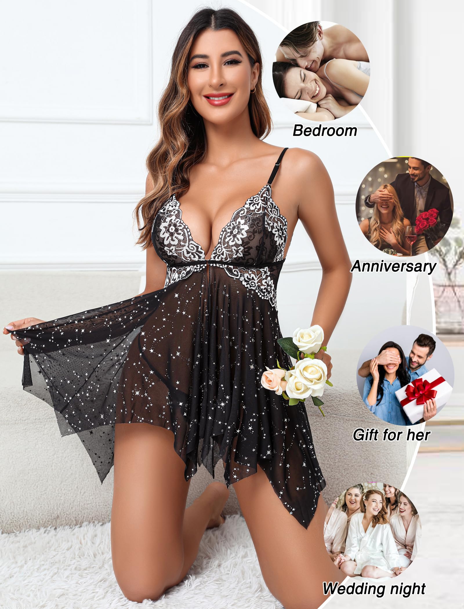 Avidlove lingerie for women with flattering and full asymmetrical hem to highlights your elongated legs' line, adjustable spaghetti straps to offer perfect fit, and the true beauty is shown through the bicolor floral lace cups