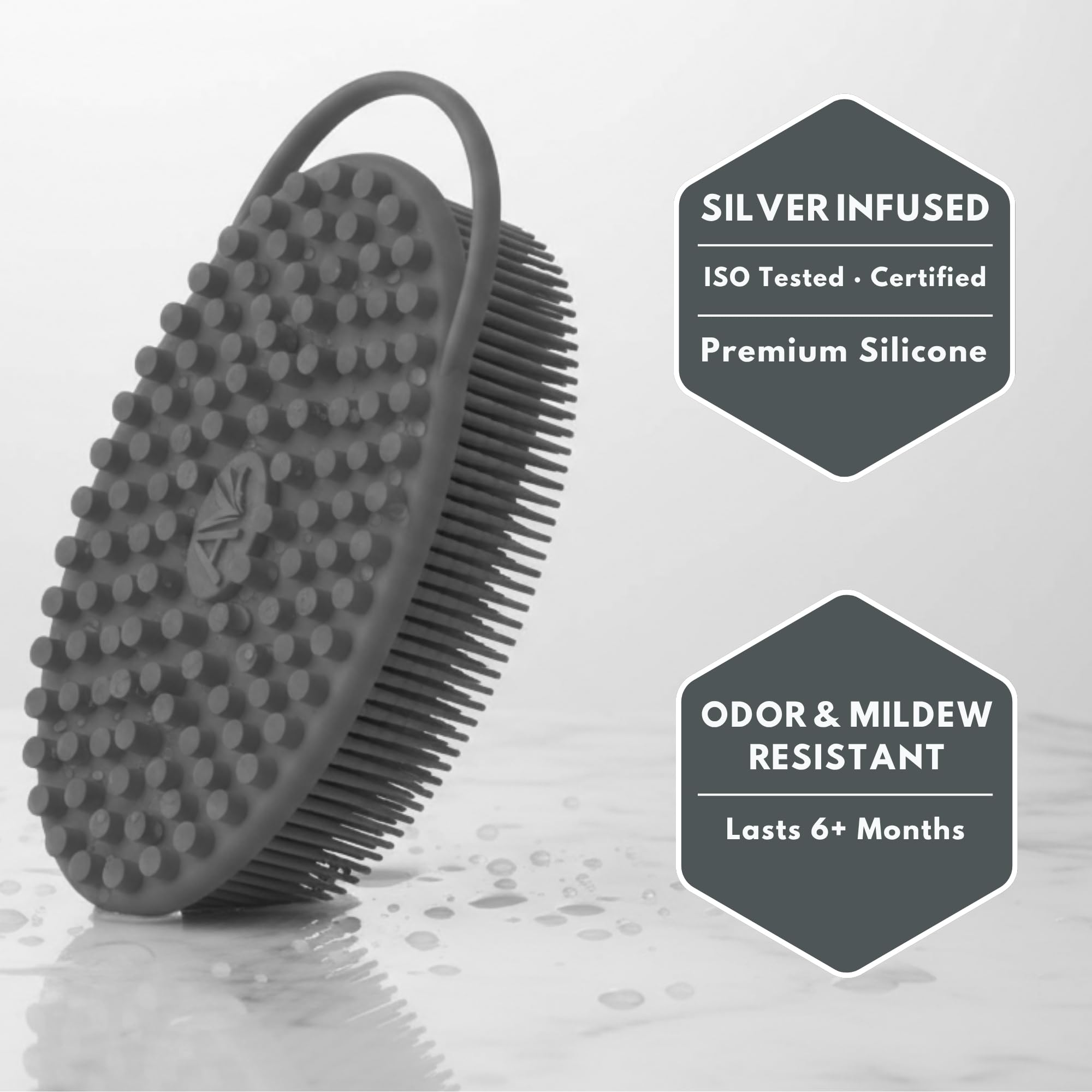 ★ SUPERIOR TO TRADITIONAL LOOFAHS - Silver-infused silicone construction rinses completely clean and air-dries quickly. While loofahs trap moisture and shed fibers requiring frequent replacement, our advanced scrubber maintains its integrity through daily use