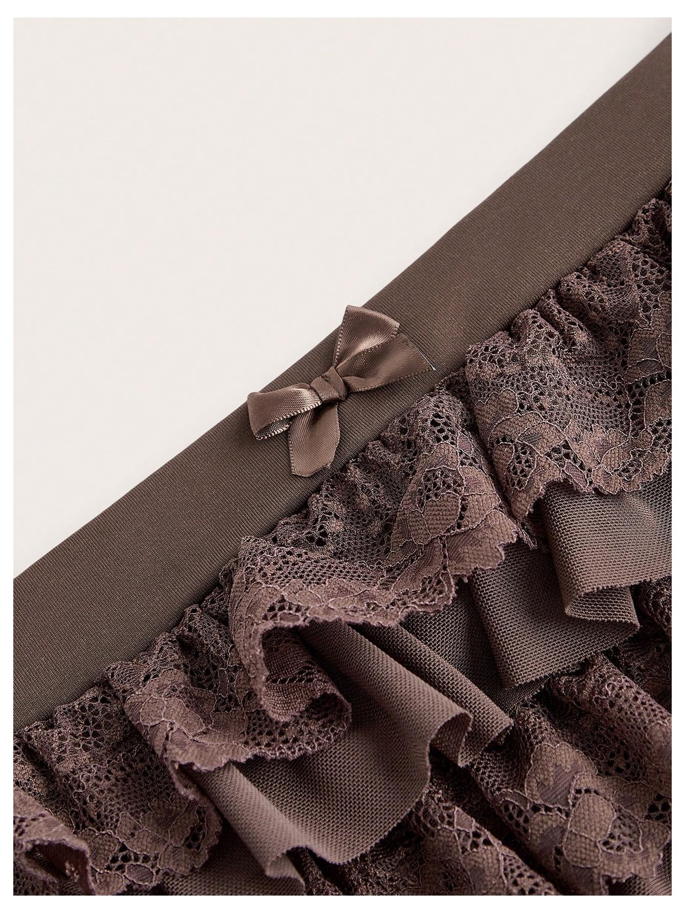Features: This lace short pants are designed with layered ruffle lace trim, small bow front, elastic waist, low waist and solid color. The shorts have a cute, sweet and fashion style for women.