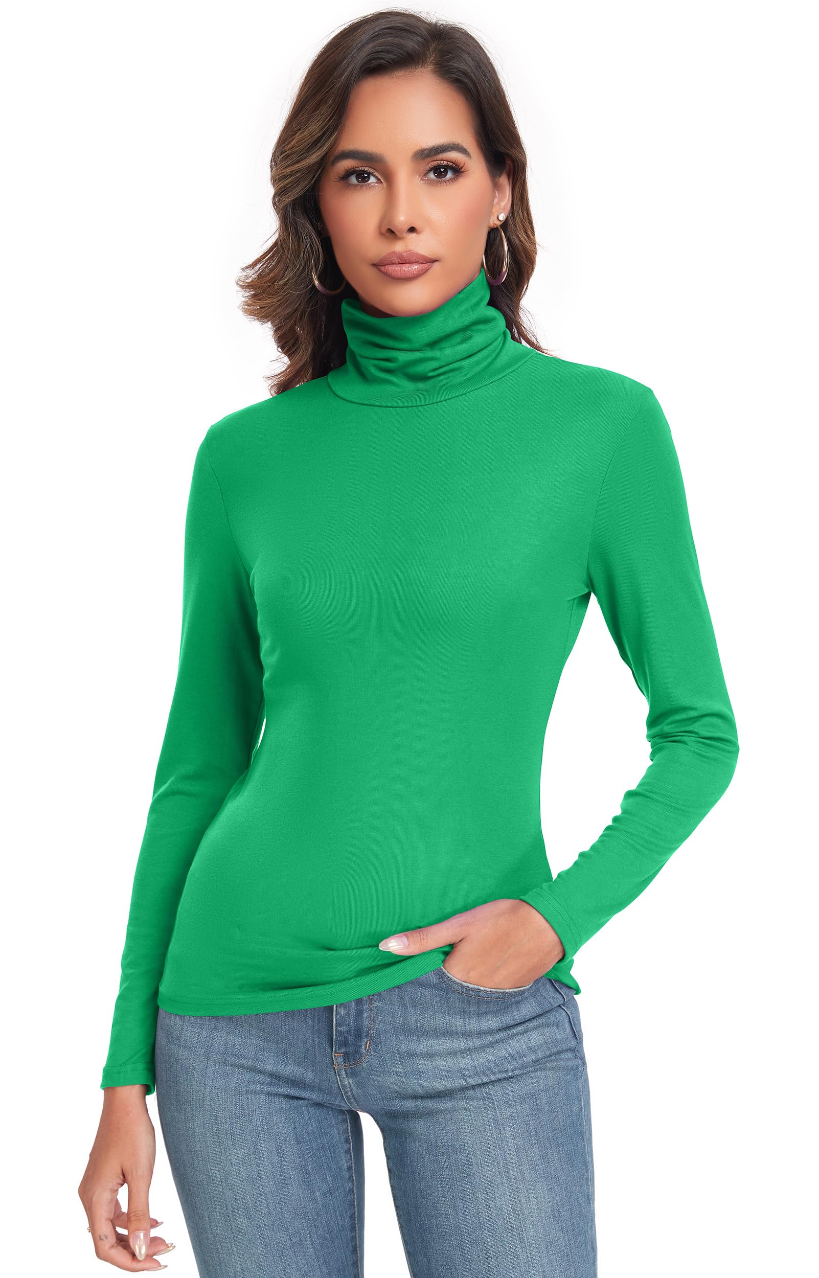 Description Womens Turtleneck Long Sleeve Shirts Thermal Underwear Tops Women Mock Neck Turtleneck Active Shirt Base Layer Long Sleeve Underwear Tops make yourself comfortable and stylish. Stretchy, lightweight but not see through. Slim fit but so soft and comfort. Our long sleeve turtleneck top can be easily paired with shorts, jeans, trousers, skirts, high heels, or boots. You'll look sexy, fashionable, and elegant in any occasion. Women's High Neck Long Sleeve Turtleneck T-Shirt great for cold weather, this turtleneck makes from stretchy and breathable fabric and snug fits to your neck. A necessity for every woman's wardrobe! Machine wash, Not fade, Us Standard Size. Please refer to the size chart before purchasing. Size Chart Small --- Bust 33.0" --- Sleeve 22.8" --- Length 24.4" Medium --- Bust 35.4" --- Sleeve 23.2" --- Length 24.8" Large --- Bust 37.8" --- Sleeve 23.6" --- Length 25.2" X-Large --- Bust 40.2" --- Sleeve 24.0" --- Length 25.6" XX-Large --- Bust 42.6" --- Sleeve 24.4" --- Length 26.0" Note: 1. Please allow 0.4-0.8 inch differ due to manual measurement. 2. Due to the light and different computer monitor, the color may be slightly different as pictures.
