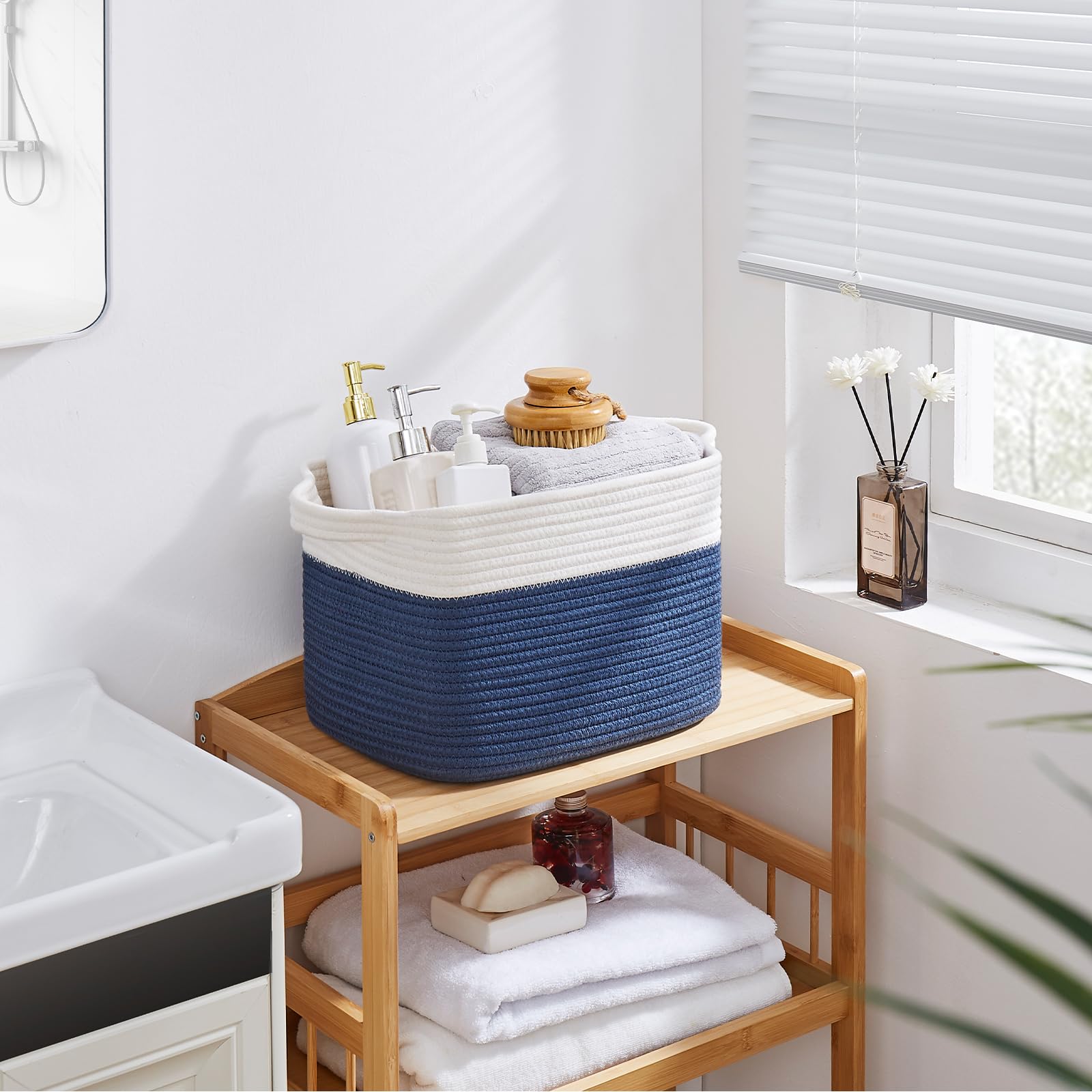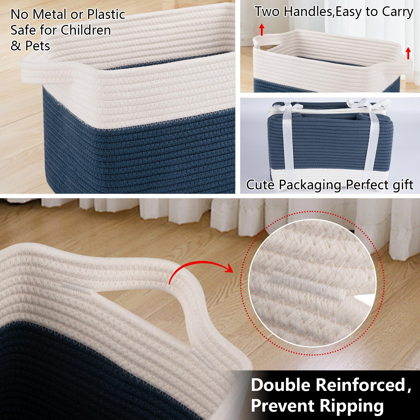 High Quality Cotton Rope Woven: Woven cotton thread is very soft and don't damage your floors and furniture. Seamless design, not easy to tear,More firm than rattan and plastic materials. Our storage basket has no harsh chemiacls added, and the cotton rope basket is safe for kids, elders and pets. Firm enough and stylish enough to go anywhere in the home