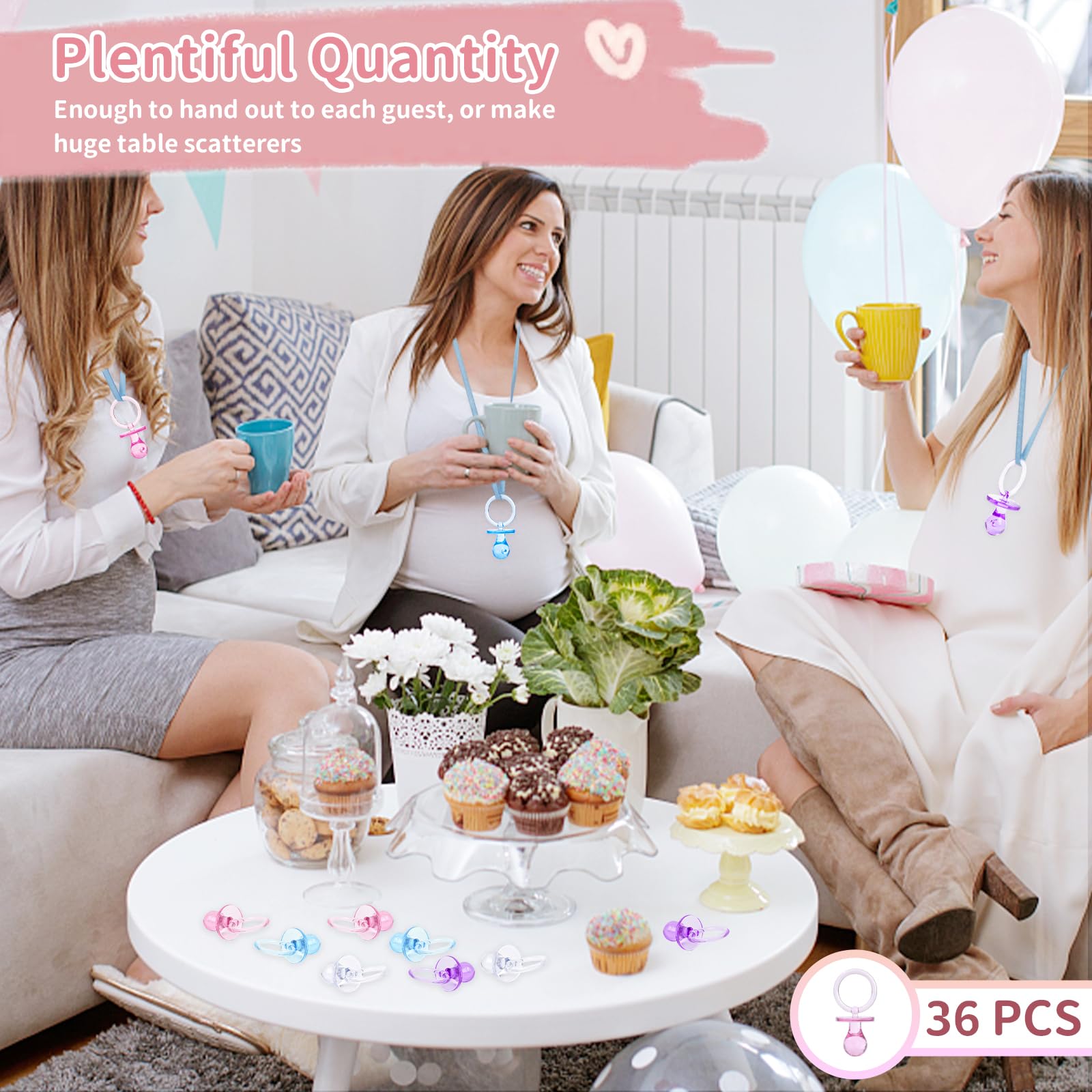 Reliable Acrylic Material - These pacifiers for baby shower game are made of high-quality acrylic material, which is smooth, durable, and odor-free. Safe to use as your table decoration or wear on your body