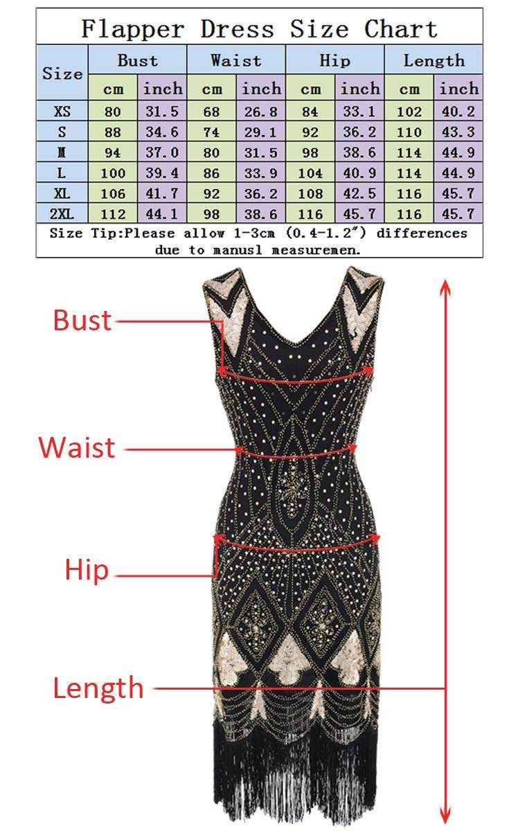 Package include: 1 x 1920S Sequin Tassel Flapper Dress , 2 x Pearl Necklace ; 1 x Long Satin Gloves; 1 x Black Cigarette Holder ; 1 x Headband ; 2 x Earrings ; 1 x Pearl Bracelet ; 1 X Pearl Brooch ; 1 x Pearl Open Ring.