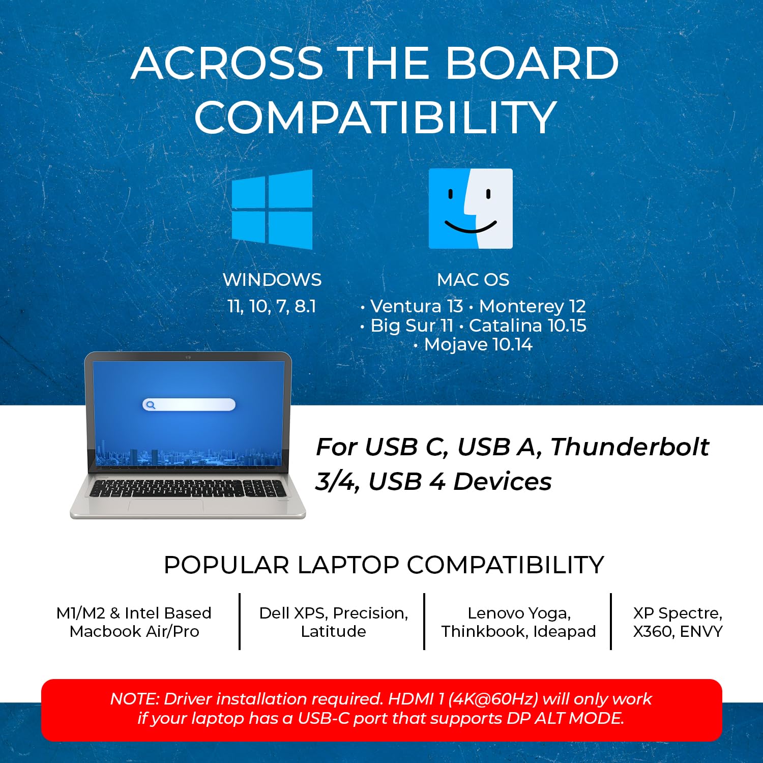 Versatile Display Expansion: Works as a HDMI Docking Station, DisplayPort Hub, and Dual Monitor HDMI Adapter Extend solution. Supports DisplayPort Alt Mode USB C Hub, USB C to DisplayPort Splitter, and flexible multi-display configurations.