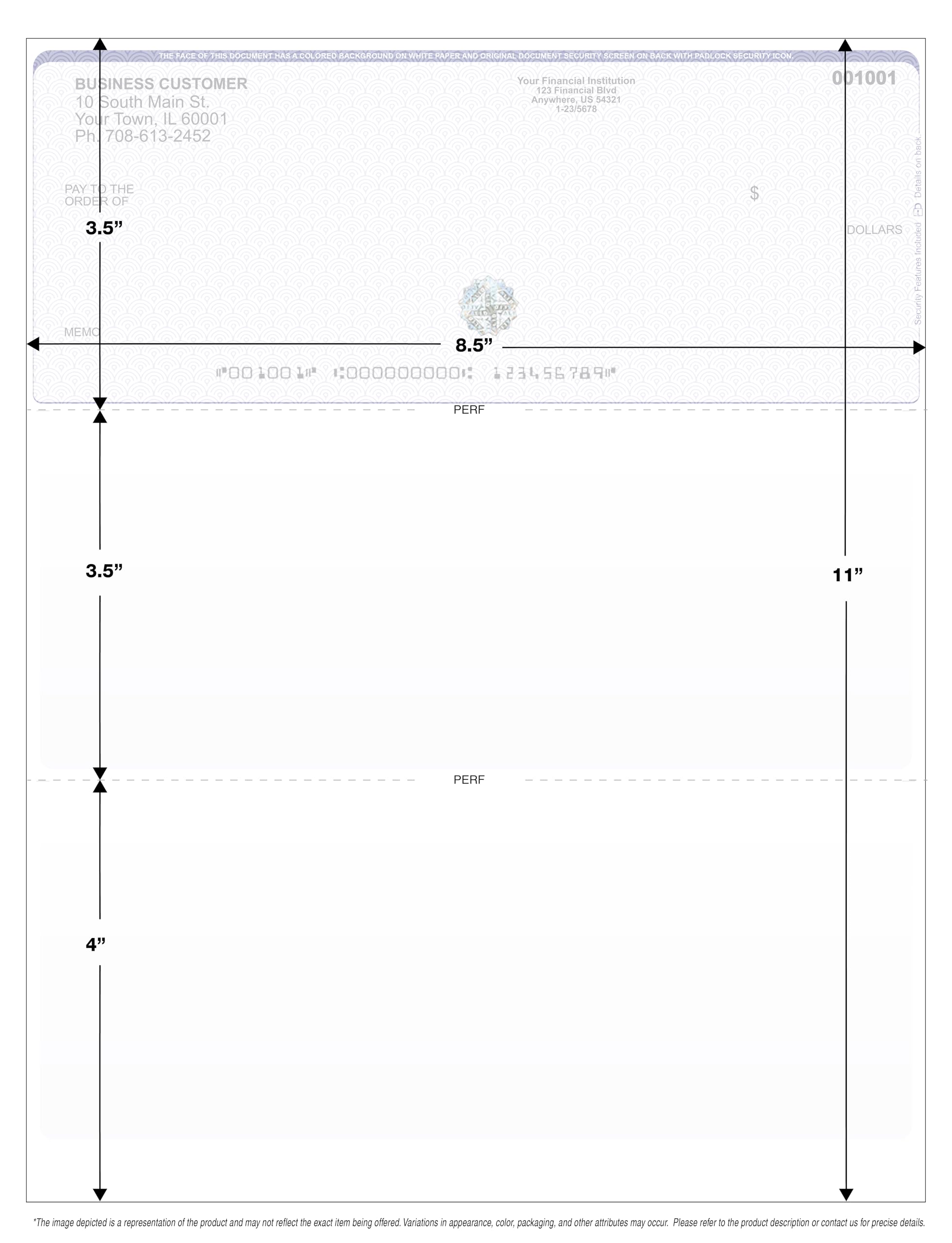 One sheets comes with one check on the top (8 1/2'' x 3'') and two perforated vouchers below for convenient record keeping