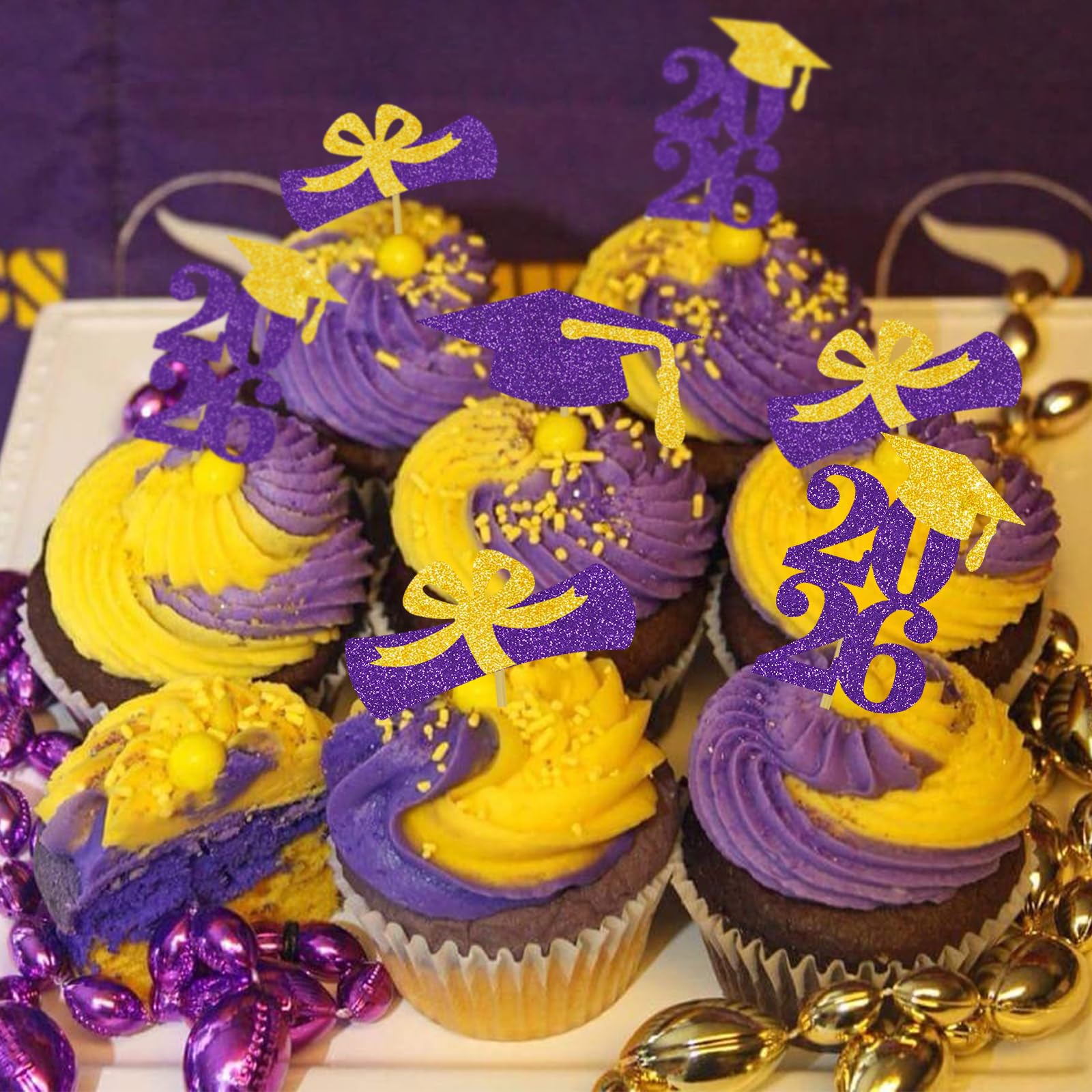 The class of 2026 cupcake toppers are made of glitter paper, fully assembled and ready to use, you don’t worry about falling glitters everywhere! Decorate your cupcakes with these glitter toppers