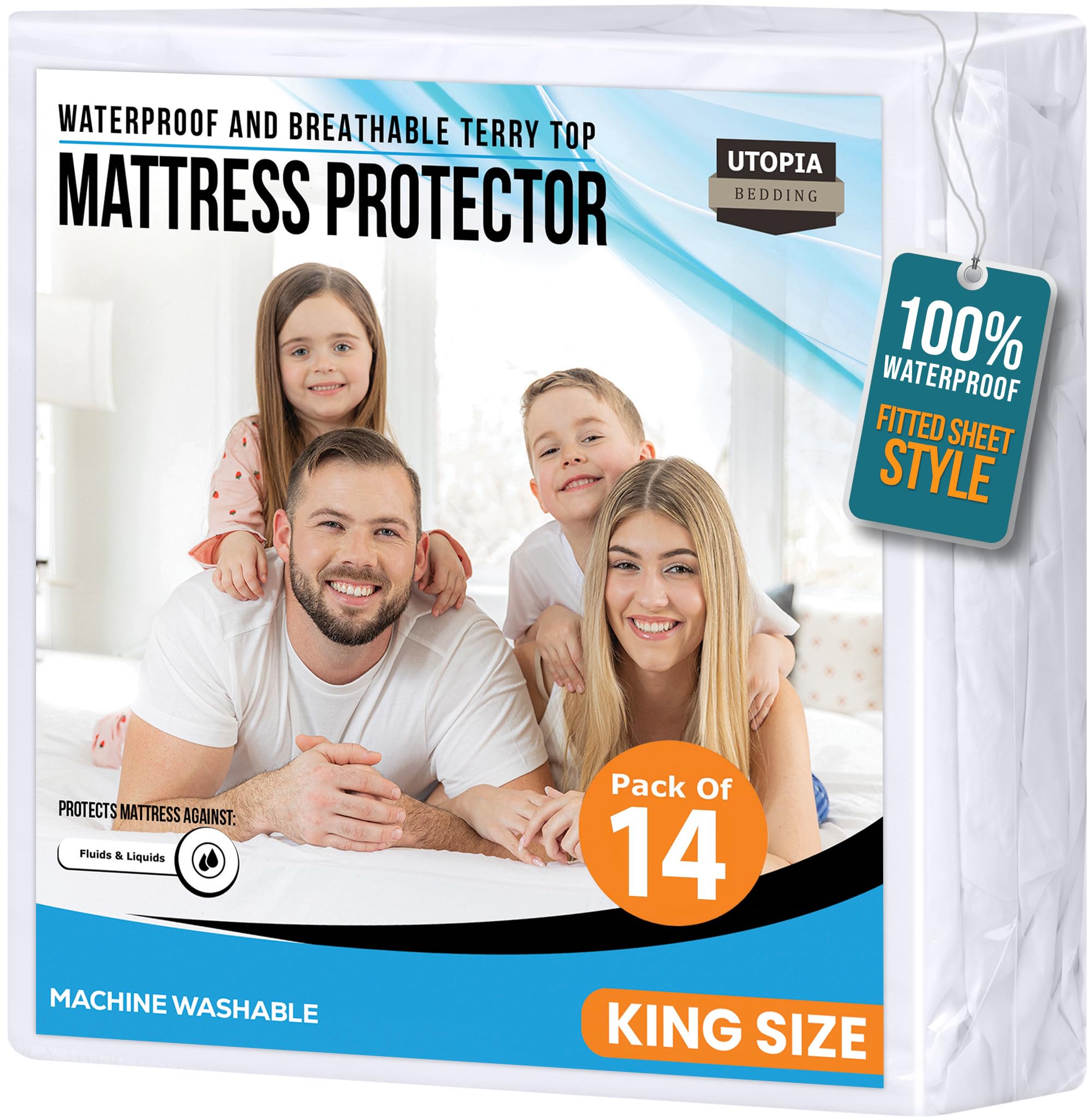 Mattress Protector Pack Of 14 - Fits King size mattress perfectly with dimensions 78 inches by 80 inches by 17 inches, featuring professionally turned hems and deep fitted pockets