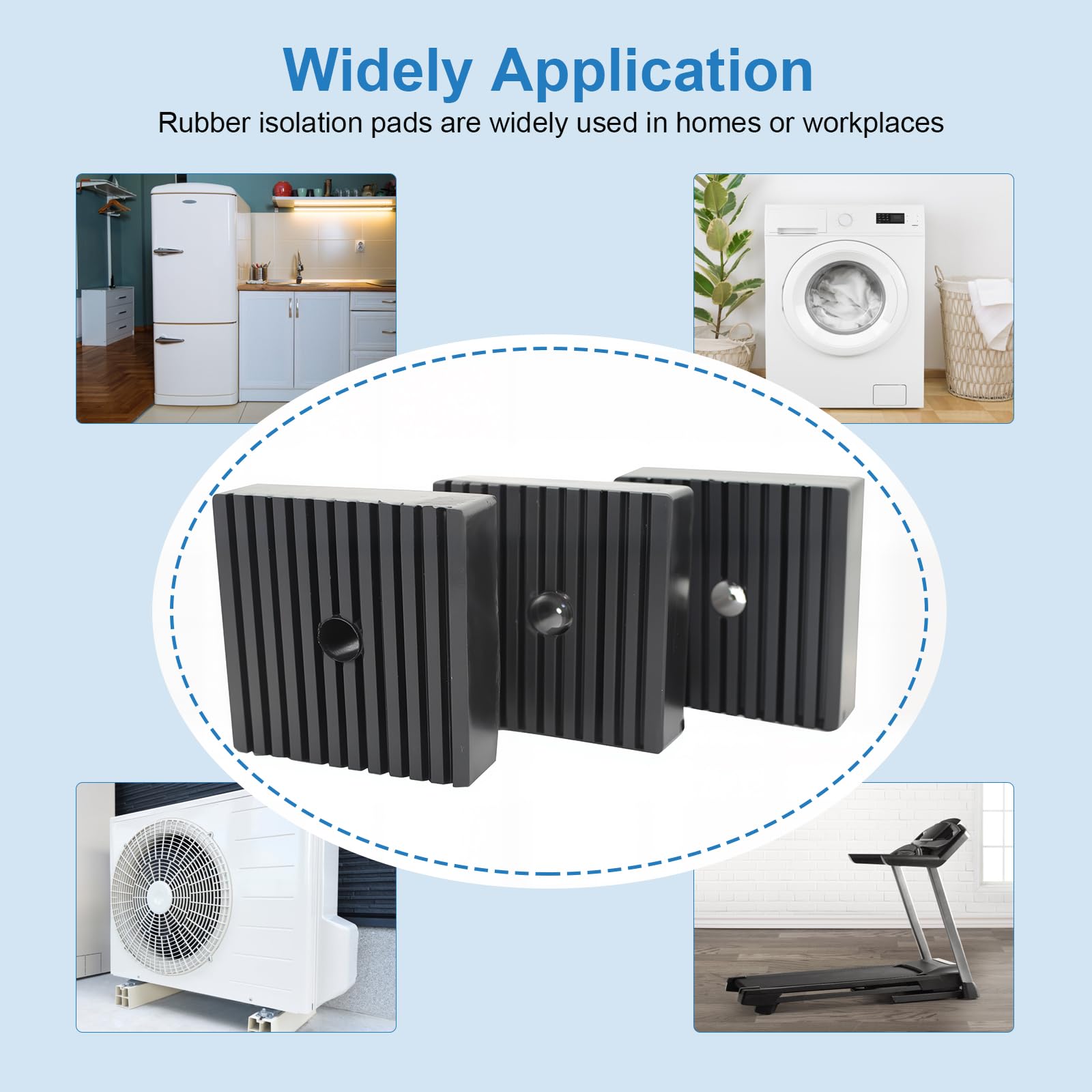 Solid Rubber Shock Pad Isolation and Noise: The air compressor pad shock absorber pad for air compressor Minimizes equipment vibrations and reduces operational noise by, protecting floors, machinery, and workspace from damage and disturbances.while providing superior noise reduction and shock absorption