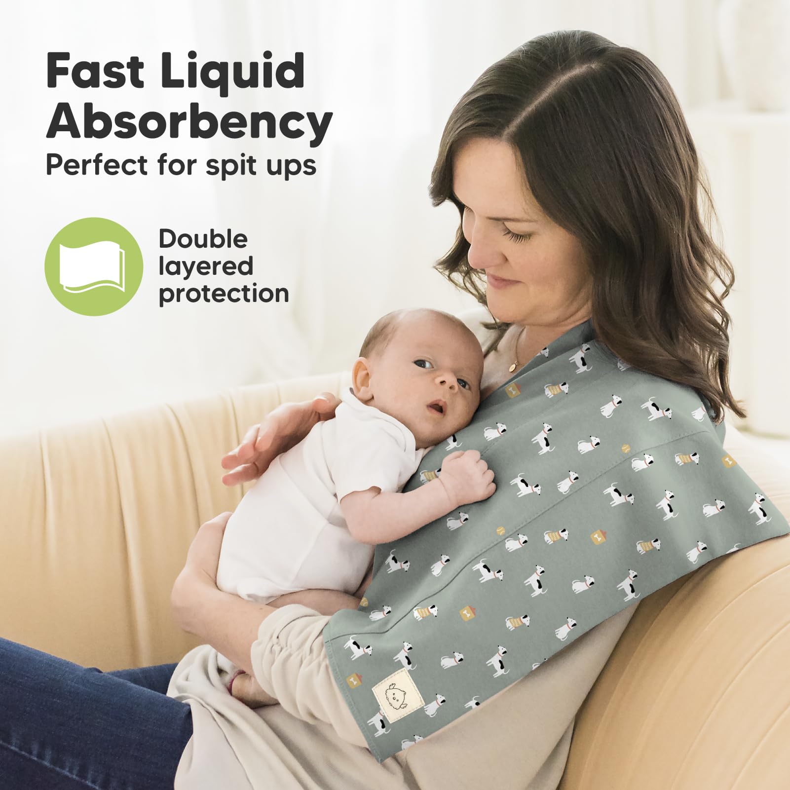 Super Absorbent, Catches Liquid Well - These burping cloths for babies sits on your shoulder comfortably, and the thick organic cotton catches rolling liquid and spit ups well.