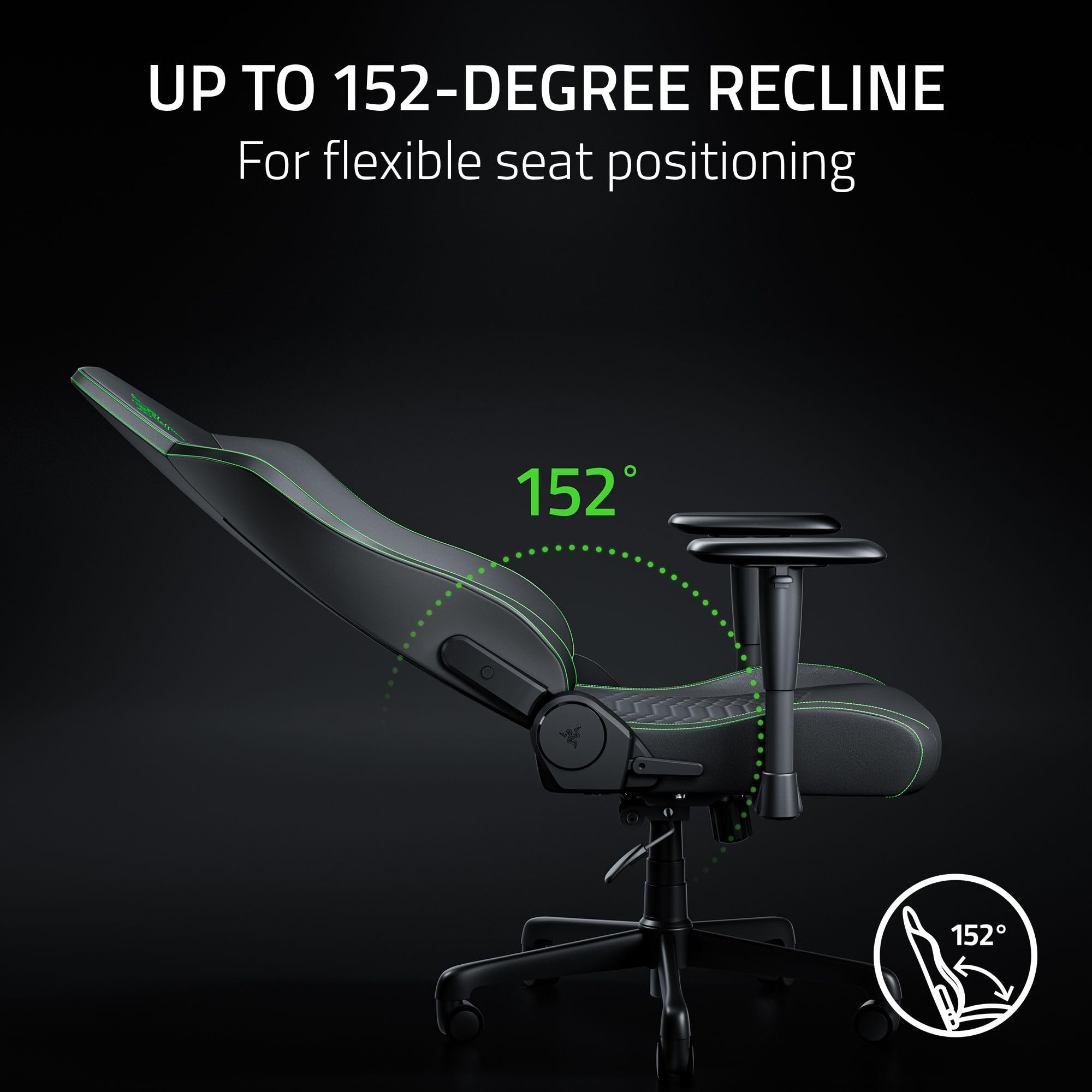 Product Overview Set yourself up for hours of uninterrupted gaming with the Razer Iskur V2 X NewGen—our essential ergonomic chair built to deliver lasting comfort and support. Wrapped in the latest Razer Gen-2 EPU Leather with CoolTouch™ Technology, it offers a noticeably cooler, more comfortable feel, making it you perfect throne for marathon gaming sessions. Thirteen times more durable than regular PU leather, this premium material retains smooth resilience while elevating performance where it matters most. Its Built-In Lumbar Support keeps you steady through marathon sessions, encouraging a neutral sitting position to minimize back fatigue. The High-Density Cold-Cured Foam Cushion ensures seamless pressure distribution, resisting sagging while delivering plush comfort that lasts. With Ultra-Wide Shoulder Arches and Seat Base, enjoy freedom to shift positions naturally—whether cross-legged or reclined. Ultra-Durable 2D Armrests let you fine-tune height and angle for personalized support, while resisting peeling and cracking. Finally, an adjustable recline of up to 152° gives you flexible positioning for gaming or relaxation. Level up your setup with the ultimate blend of style, durability, and ergonomic design—crafted for gamers who demand more. Technical Specifications Box Contents