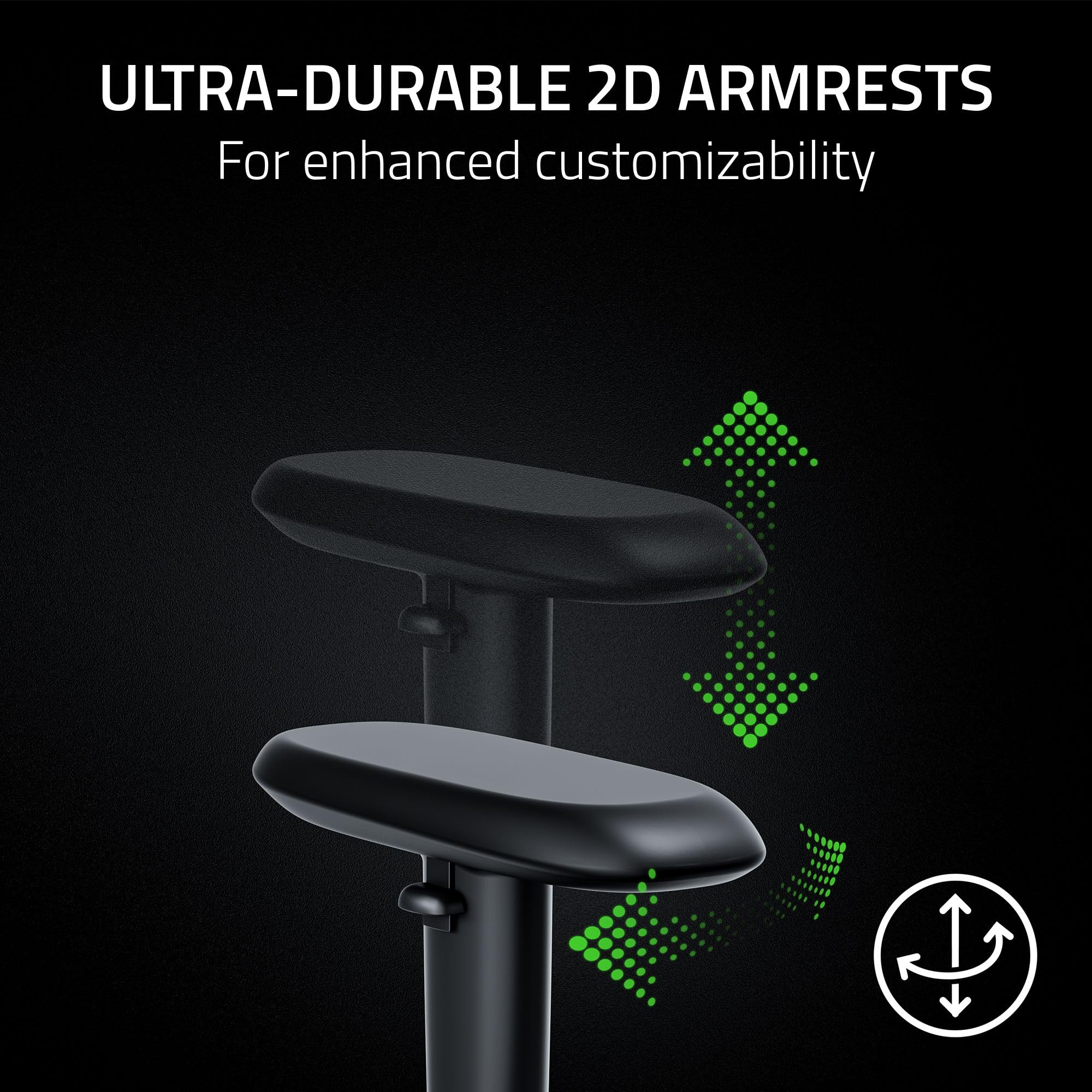 2D ARMRESTS — With armrests that can be adjusted in height and rotated inwards or outwards, arms can be in a natural, relaxed position when gaming