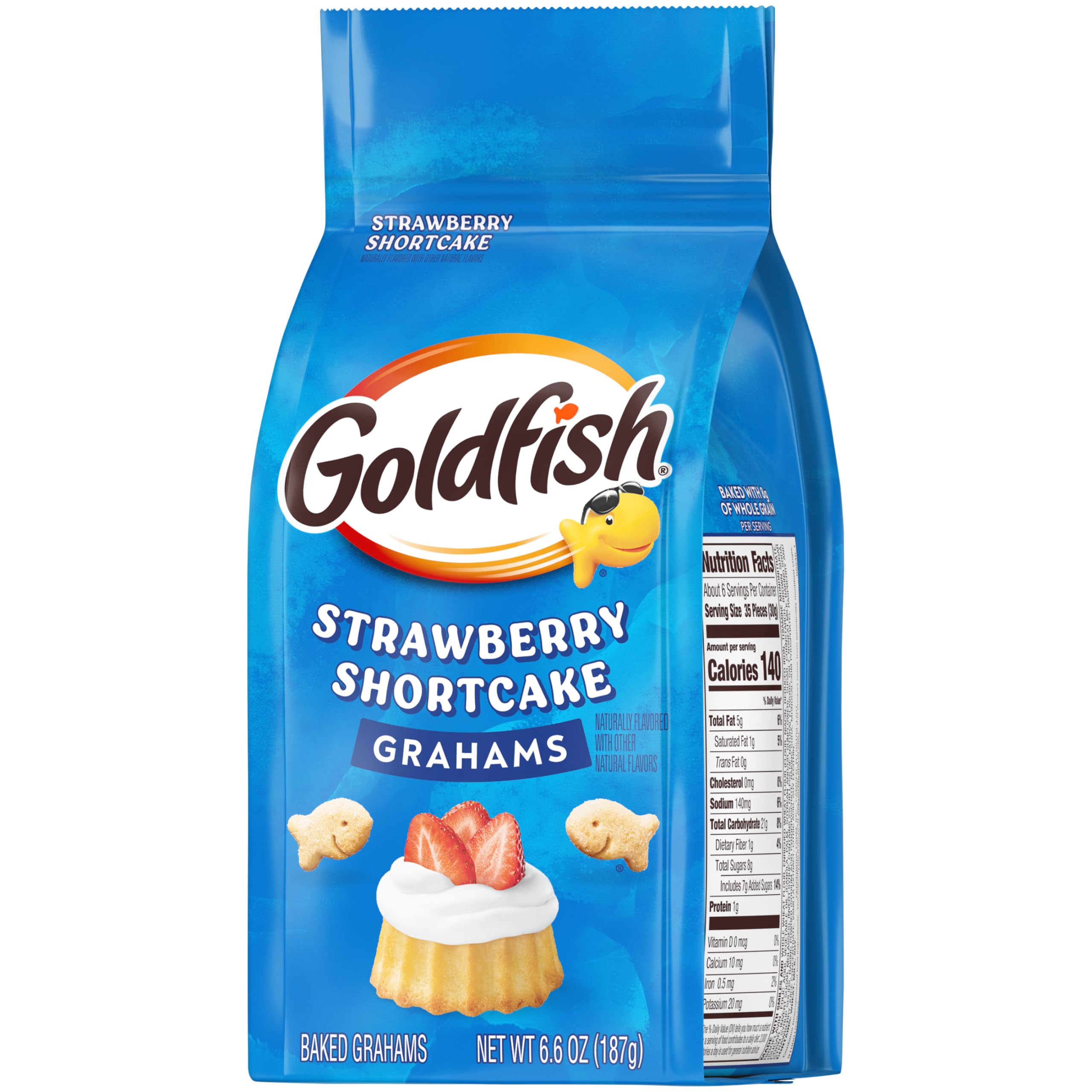 Includes one (1) 6.6-ounce bag of Goldfish strawberry shortcake flavored grahams snack crackers