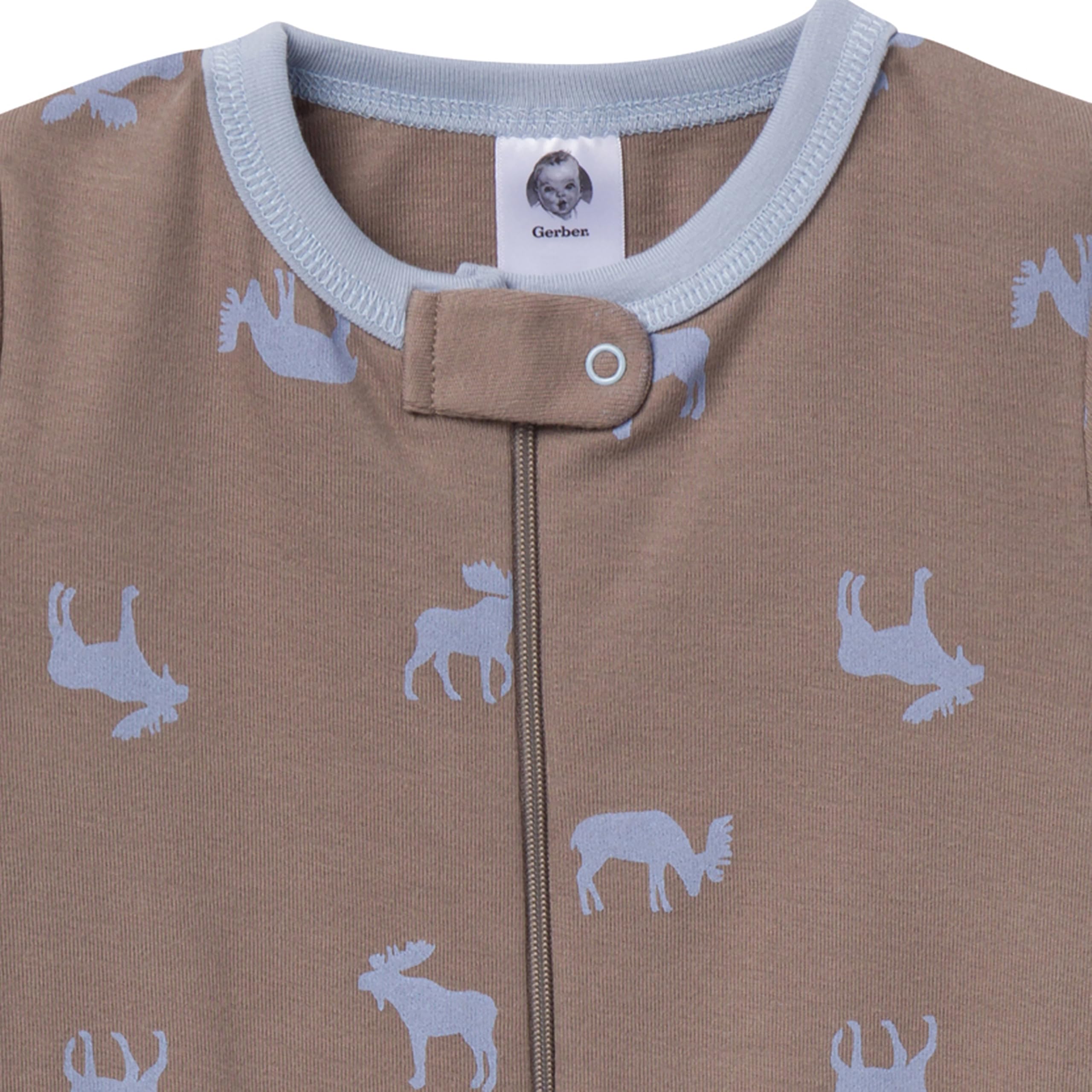 Description Designed to provide cozy comfort, our baby or toddler pajamas are the perfect fit for your little one after a full day of fun and play. Made primarily from soft cotton, they offer a breathable feel that keeps them comfortably warm throughout the night. The pajamas feature a convenient two-way zipper with a neckline guard for easy dressing and quick diaper changes, while spandex trim at the neckline and wrists ensures a flexible, secure fit. With a tight-fitting style for added safety, these pajamas are perfect for active little ones who love to play and explore, making bedtime as delightful as their daytime adventures. Each of the exciting patterns and designs in this 3-pack will be a hit all season long.